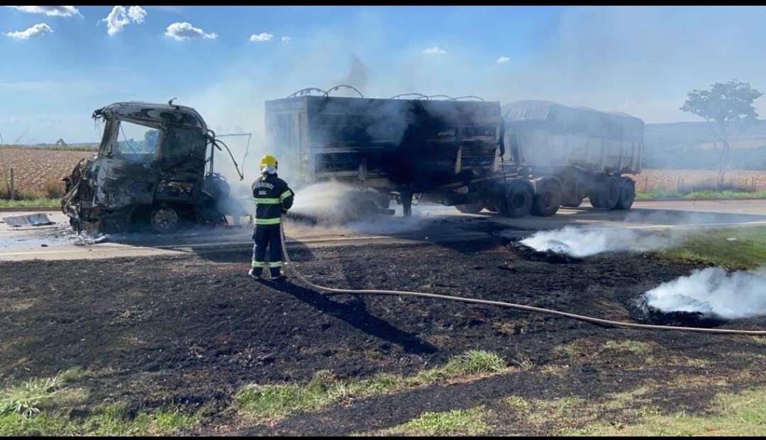 ACIDENTE DE TRÂNSITO NA BR 050,KM 240,PISTA SENTINDO CATALÃO , PRÓXIMO AO POSTO ELDORADO – VEÍCULO DE GRANDE PORTE X VEÍCULO DE GRANDE PORTE. NO LOCAL, UM CAMINHÃO BITREM COLIDIU NA TRASEIRA DE UMA CARRETA E INCÊNDIOU-SE. OS CONDUTORES DOS VEÍCULOS NÃO SE FERIRAM. REALIZAMOS O COMBATE, EXTINÇÃO E RESCALDO DO INCÊNDIO COM O USO DE 4000 LITROS DE ÁGUA, COMPARECERAM AO LOCAL A POLÍCIA RODOVIÁRIA FEDERAL E UMA EQUIPE DE SINALIZAÇÃO DA CONCESSIONARIA ECO 050.