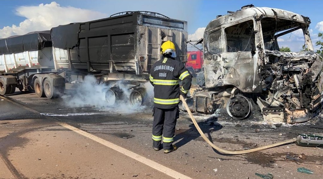 ACIDENTE DE TRÂNSITO NA BR 050,KM 240,PISTA SENTINDO CATALÃO , PRÓXIMO AO POSTO ELDORADO – VEÍCULO DE GRANDE PORTE X VEÍCULO DE GRANDE PORTE. NO LOCAL, UM CAMINHÃO BITREM COLIDIU NA TRASEIRA DE UMA CARRETA E INCÊNDIOU-SE. OS CONDUTORES DOS VEÍCULOS NÃO SE FERIRAM. REALIZAMOS O COMBATE, EXTINÇÃO E RESCALDO DO INCÊNDIO COM O USO DE 4000 LITROS DE ÁGUA, COMPARECERAM AO LOCAL A POLÍCIA RODOVIÁRIA FEDERAL E UMA EQUIPE DE SINALIZAÇÃO DA CONCESSIONARIA ECO 050.