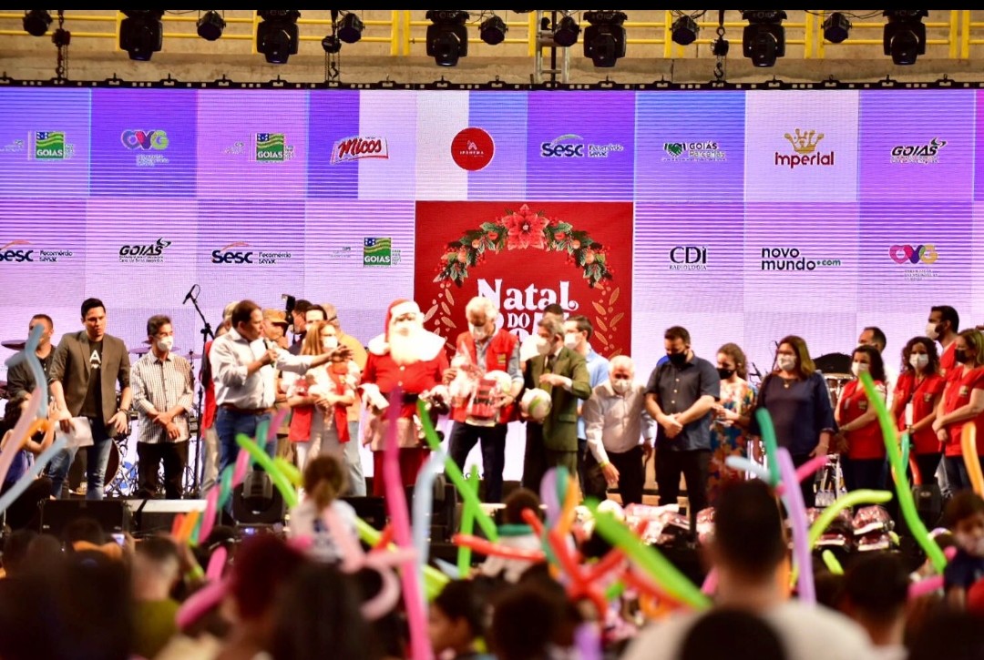 _Evento no Ginásio Goiânia Arena marca primeiras entregas de itens como bolas, bonecas e carrinhos para crianças em condições de vulnerabilidade social. Iniciativa, coordenada pela Organização das Voluntárias de Goiás (OVG) e pelo Gabinete de Políticas Sociais (GPS), é extensiva a todos os municípios goianos e prossegue ao longo do mês de dezembro. Além de promover alegria e dignidade para as famílias no período do Natal, medida contribui para assegurar direito de brincar a milhares de crianças goianas. Em show, cantor Felipe Araújo faz a alegria dos presentes_