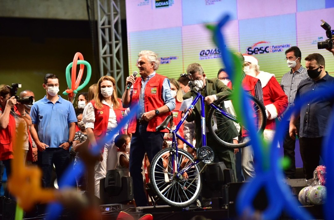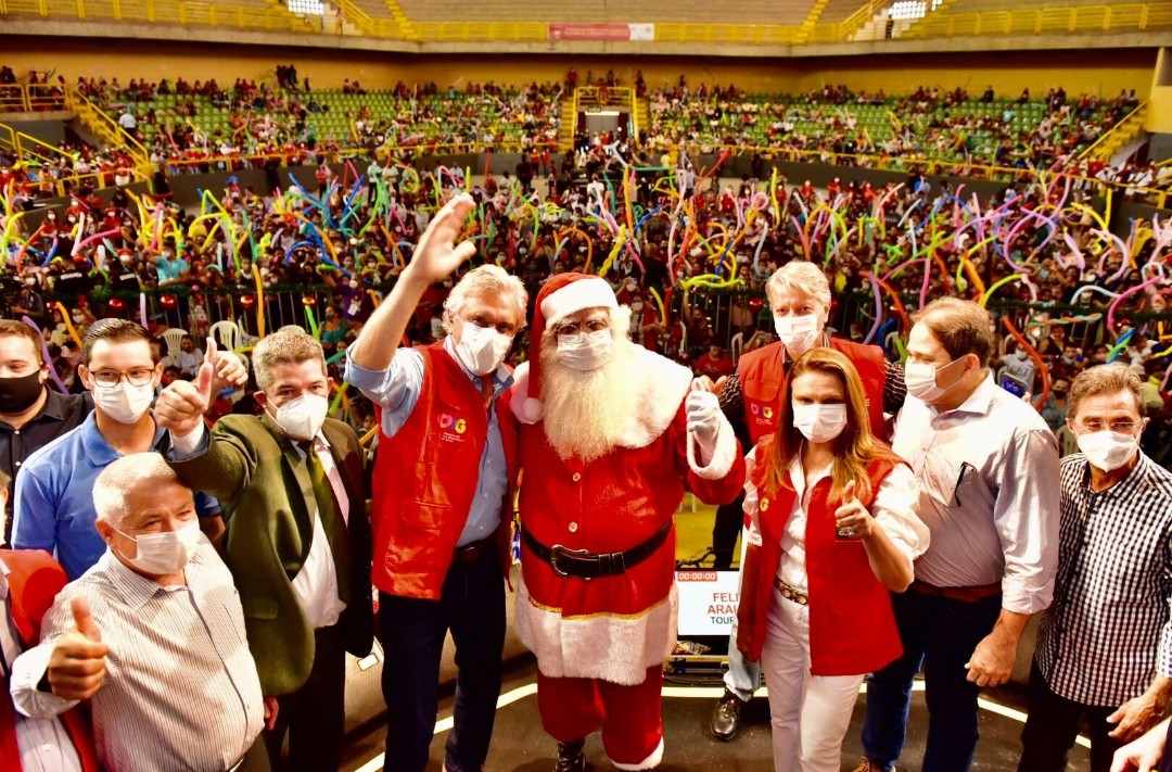 O governador Ronaldo Caiado realizou, neste domingo (05/12), a entrega dos primeiros brinquedos do programa Natal do Bem. Em evento realizado no Ginásio Goiânia Arena, na capital, famílias em condições de vulnerabilidade foram recebidas para a distribuição de carrinhos, bonecas e bolas. A ação do Governo de Goiás vai entregar, ao longo do mês de dezembro, meio milhão de brinquedos em todos os 246 municípios goianos.