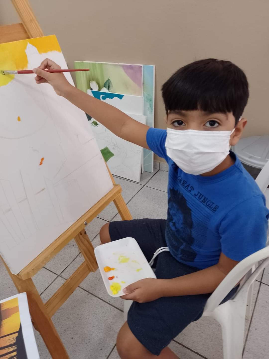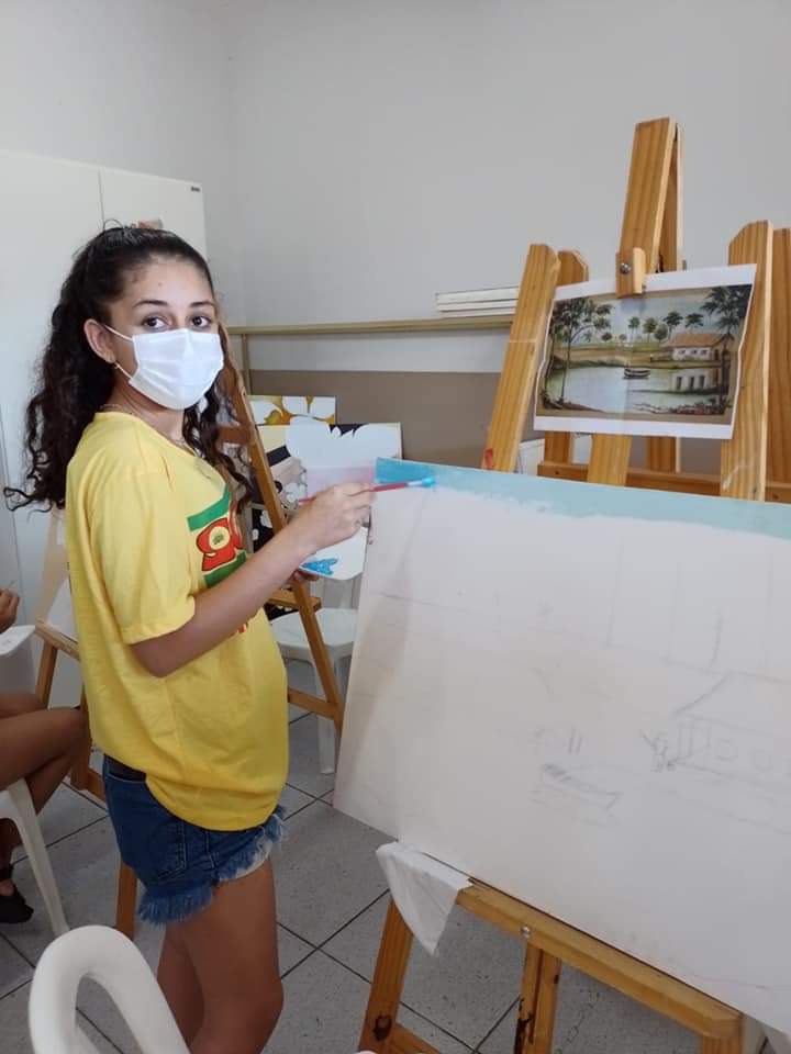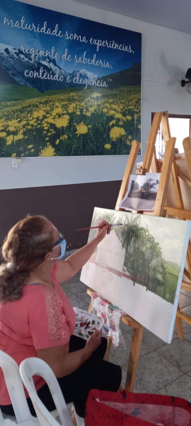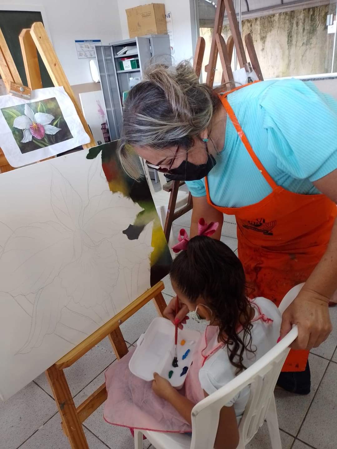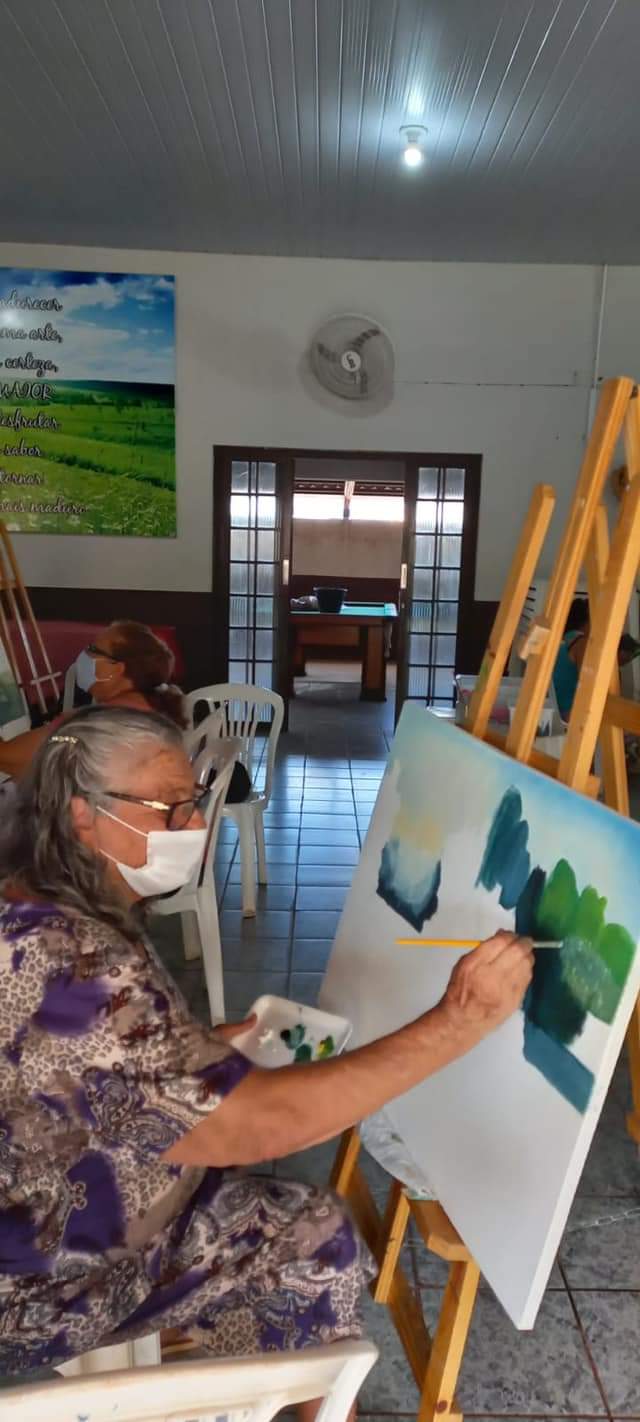 É desenvolvido também as oficinas de pintura em tela, onde são atendidas as crianças, adolescentes e a melhor idade.