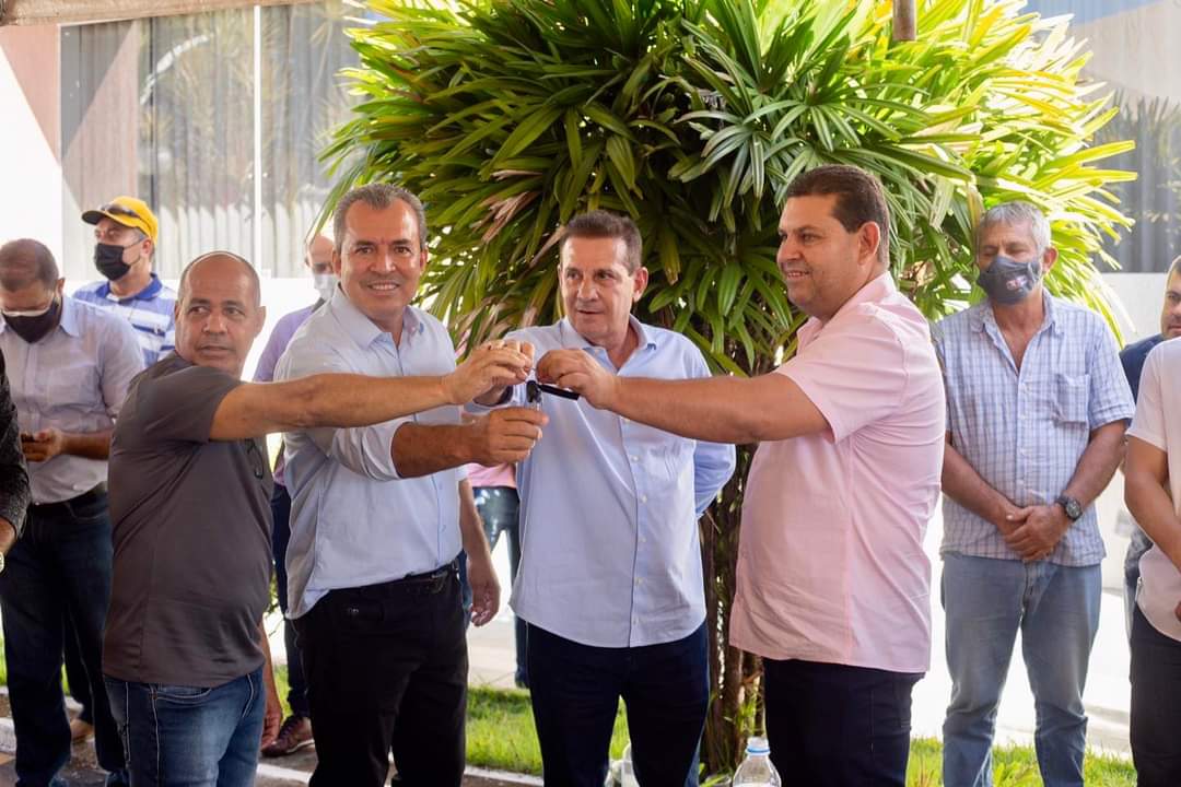 O prefeito Cebinha Nascimento recebeu na manhã desta sexta-feira (18) a visita do Senador da República, Vanderlan Cardoso (PSD), para a entrega solene do novo veículo, que é destinado à coleta e compactação de resíduos sólidos.