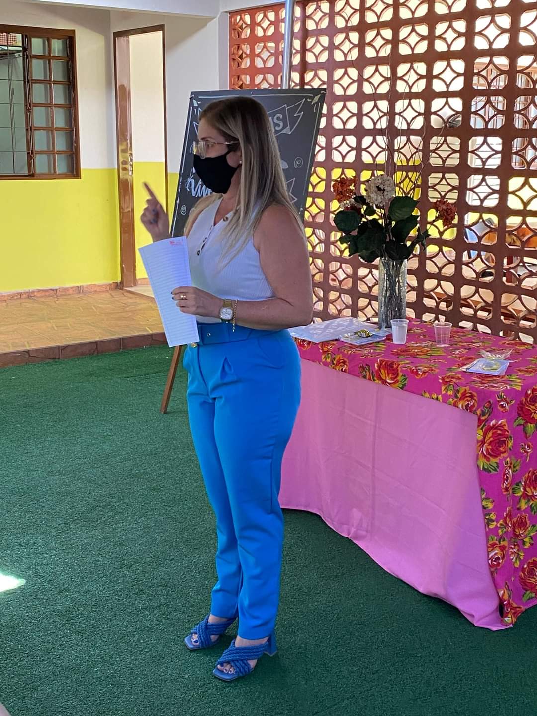 A diretora Sandra Maria recepcionou a todos, dando boas vindas e relatou em sua fala, “nosso trabalho, é um trabalho que exige acima de tudo, muito carinho, amor, respeito e responsabilidade da nossa parte, pois cuidamos do bem estar das nossas crianças que são o nosso bem maior e mais precioso,” concluiu a diretora.