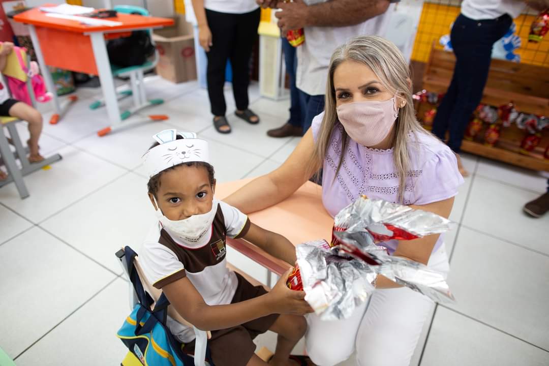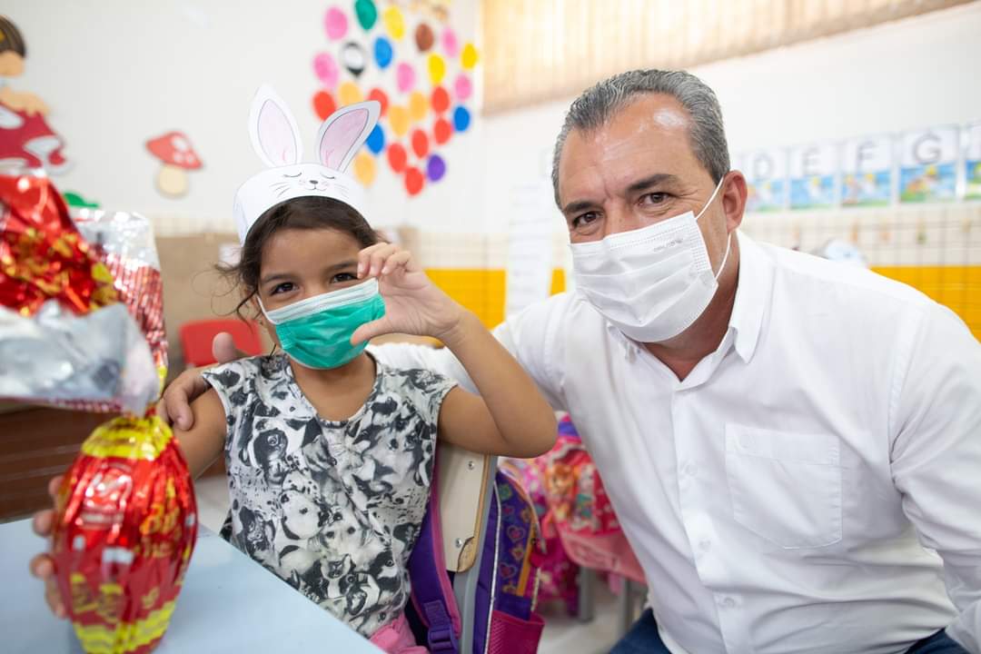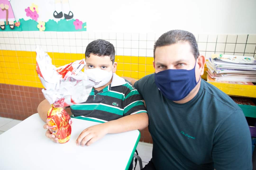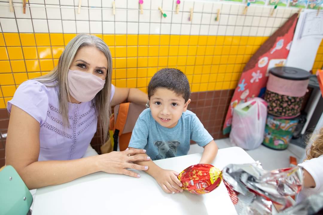 Com 100% de atividade em toda a rede de ensino, foram entregues mais de mil ovos de páscoa. A secretária da educação, Shirley Helena, comemorou este momento de confraternização após o longo período em que as escolas funcionaram sem a presença dos alunos.
