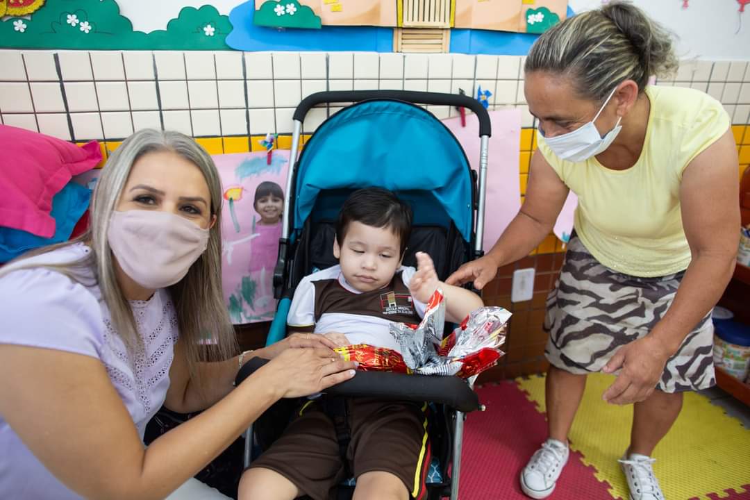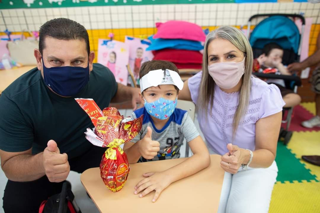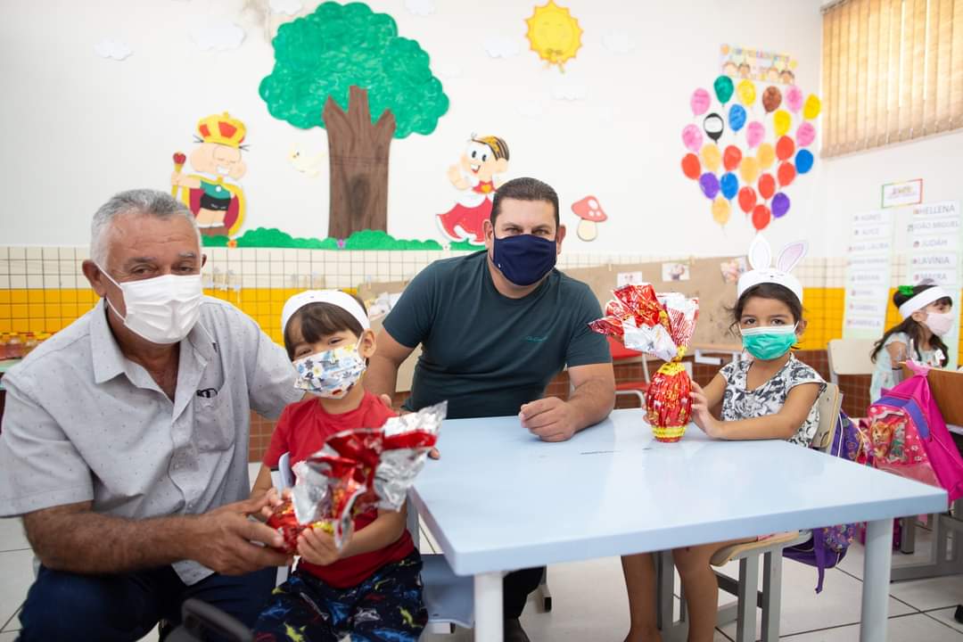 Prefeito Cebinha Nascimento acompanhado da primeira-dama Ana Lúcia, vice-prefeito Nelci Cândido e esposa Regilaina, Vereadores, Secretários e demais servidores da Secretaria de Educação entregaram nesta quarta-feira (13) ovos de chocolate para os alunos da escola Dácio Amorim Fonseca, escola Ediene da Silva Dias e CEMEI Ana Ramos dos Santos.