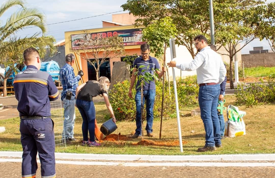 Plantio de mudas frutíferas em praça e rotatória de Ouvidor