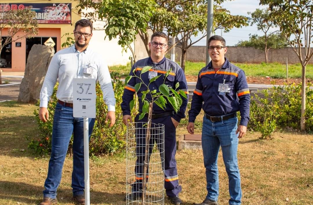 Na tarde desta sexta-feira, 13 de maio, a empresa Fagundes em comemoração aos seus 37 anos de fundação, realizou a doação de mudas frutíferas para serem plantadas em praça e rotatória de Ouvidor. amora, cajá-manga e carambola para serem plantadas na zona urbana de Ouvidor.