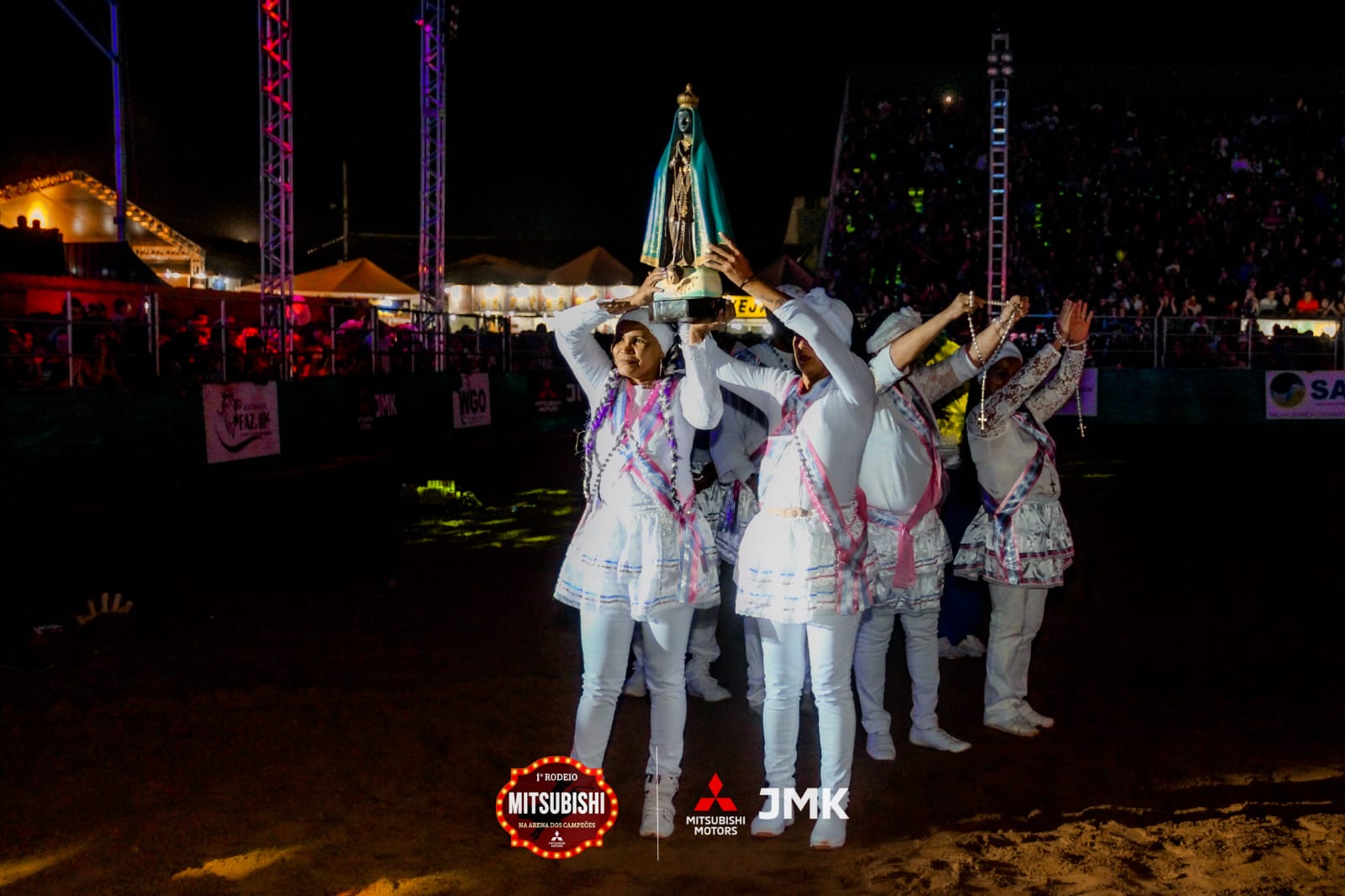 A entrada de Nossa Senhora Aparecida foi feita por representantes de ternos de Congo, o que emocionou os presentes. E ainda foi erguida para acarquibanda como forma de abençoar a todos. Em seguida, os peões e Amazonas, com suas orações. Mais uma emoção na arena dos Campeões.