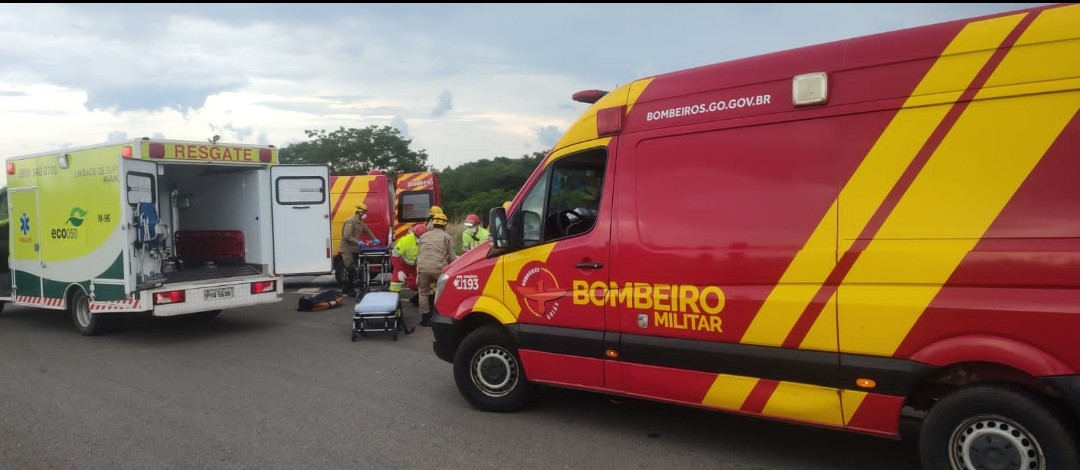✅ Histórico da ocorrência: Na tarde do dia 12/11, o serviço de emergência do 10º BBM/Catalão foi acionado para atendimento de uma ocorrência versando queda de motocicleta ocorrido em via pública, o que resultou em 02 vítimas. No local, deparamos com a vítima de 48 anos acompanhante da motocicleta sendo atendida por uma equipe de resgate pertencente à empresa Eco-050, concessionaria da BR-050. A vítima do sexo feminino, estava caída ao solo em decúbito dorsal, consciente, e apresentava escoriações pelo corpo, e após ser avaliada e estabilizada, foi transportada para o pronto socorro da Santa Casa de Misericórdia em Catalão. O condutor da motocicleta, sexo masculino, 54 anos de idade, estava caída ao solo em decúbito ventral, ainda com seu capacete na cabeça, inconsciente, cianótico, apresentando midríase, com grande hemorragia na região da face e sinais de politraumatismo pelo corpo. Durante a avaliação, foi realizado o rolamento da vítima e retirada do capacete, porém a vítima não apresentava sinais vitais, com ausência de respiração e ausência de pulso. O local foi isolado até que uma guarnição da polícia militar chegasse no local para as devidas providencias. Compareceram também no local unidades da policia rodoviária federal e da superintendência municipal de trânsito.