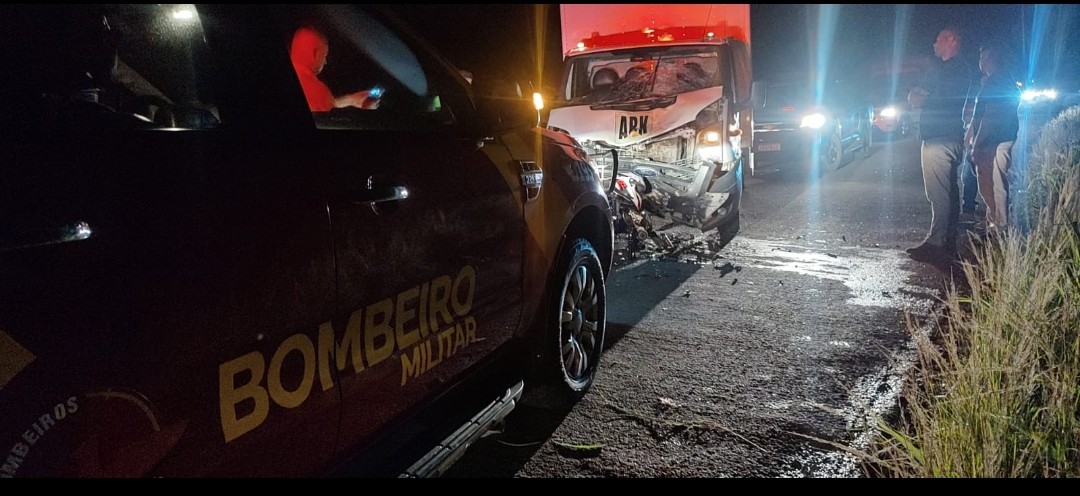 ACIDENTE CAMINHÃO BAÚ E MOTOCICLETA TRECHO RURAL DA GO-330 EM FRENTE O AEROPORTO