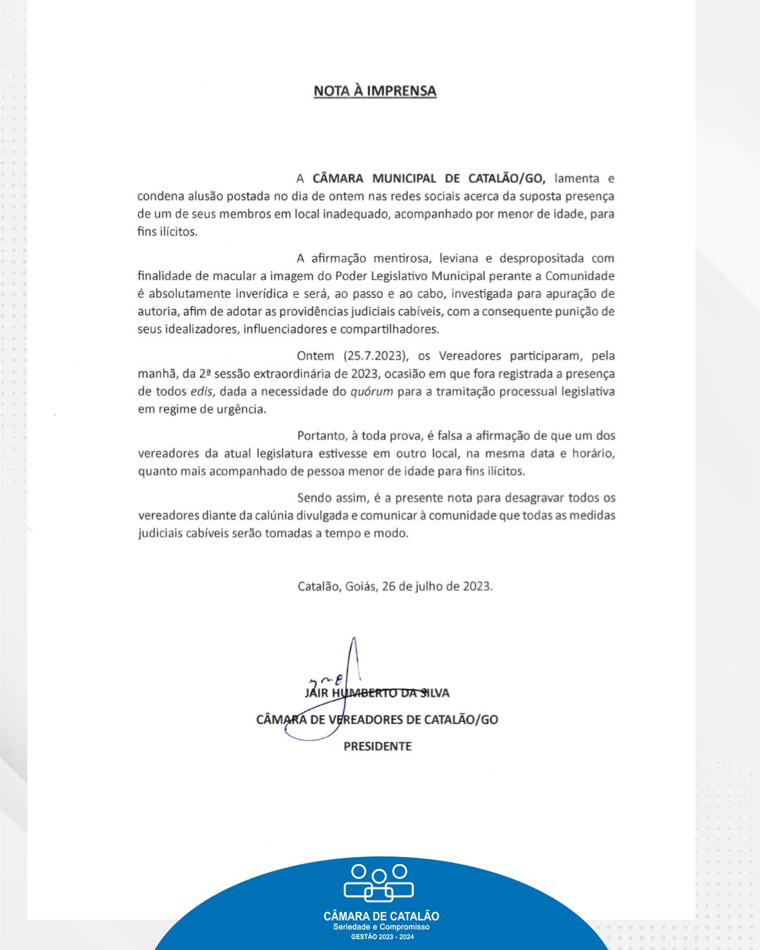 Catalão NOTA A IMPRENSA/CÂMARA MUNICIPAL DE CATALÃO by Rosana 26 de julho de 2023 written by Rosana 26 de julho de 2023 41 0 comment 0 FacebookTwitterPinterestEmail Rosana previous post Governador Ronaldo Caiado participa da entrega de mais de 250 Comendas da Ordem do Mérito Anhanguera na cidade de GOIÁS next post DETRAN GOIÁS/25-07 DIA DO MOTORISTA NO BRASIL You may also like Catalão celebra o talento e a criatividade dos... 5 de novembro de 2025 Catalão#Semana da Conciliação está acontecendo no Fórum de... 3 de novembro de 2025 Campeão olímpico Dante acompanha as finais do Catalão... 3 de novembro de 2025 Prefeitura de Catalão leva sessão de cinema inédita... 2 de novembro de 2025 Catalão recebe 5 toneladas de alimentos para famílias... 2 de novembro de 2025 Duplicação da GO-330 avança e supera metas: Pedro... 1 de novembro de 2025 Deputado Jamil Calife prestigia final do Campeonato Metabase... 1 de novembro de 2025 Prefeitura de Catalão realiza Aulão de Dança do... 31 de outubro de 2025 Catalão promove dia de lazer e inclusão para... 30 de outubro de 2025 Catalão#Reunião com a Equatorial discute melhorias no fornecimento... 29 de outubro de 2025 Leave a Comment Cancel Reply Save my name, email, and website in this browser for the next time I comment.