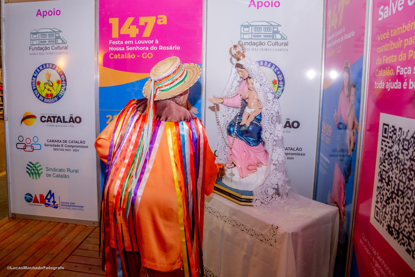 “Estamos no estande da Festa do Rosário na ExpoCatalão para que os devotos, fiéis e quem gostar da festa, faça sua visita e deixe seu pedido para Nossa Senhora abençoar”, comentou Thadeu Aguiar, que completou: “Esse ano, também será possível doar e colaborar diretamente seja com um real, com o que o coração mandar e a pessoa puder ; queremos converter esse recurso totalmente para a festa”, esclareceu.
