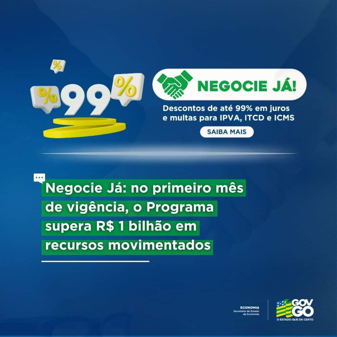 Para saber mais e conferir as oportunidades de negociação, acesse goias.gov.br/economia/negocie-ja/.