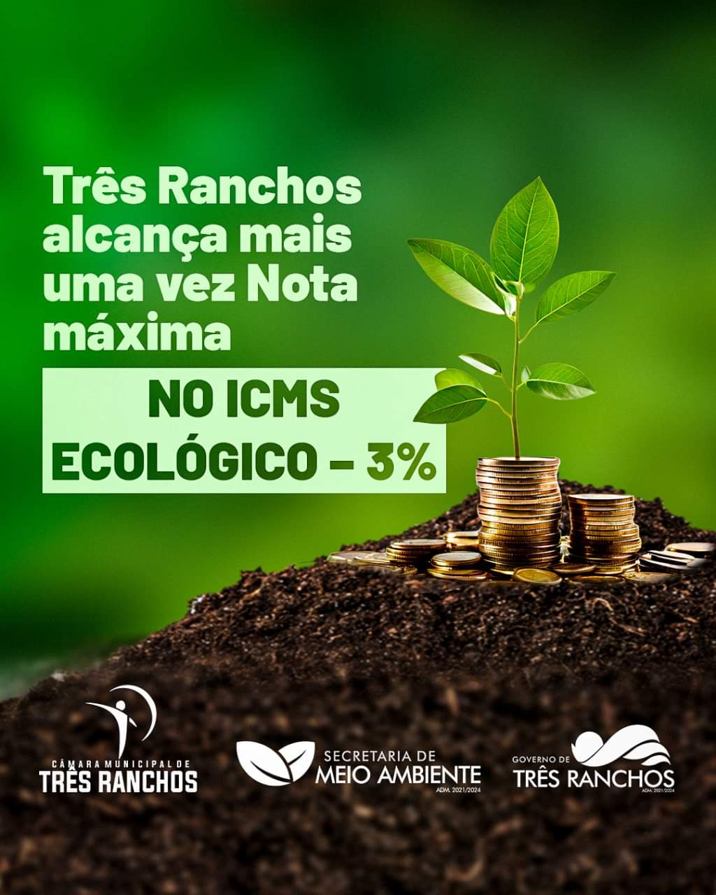 #icmsecológico |💲🌿Com orgulho, celebramos mais um ano de excelência ambiental! O Município de Três Ranchos, em Goiás, recebeu nota máxima no ICMS Ecológico que é de 3%, reconhecendo nosso compromisso inabalável com a preservação do meio ambiente e o desenvolvimento sustentável.