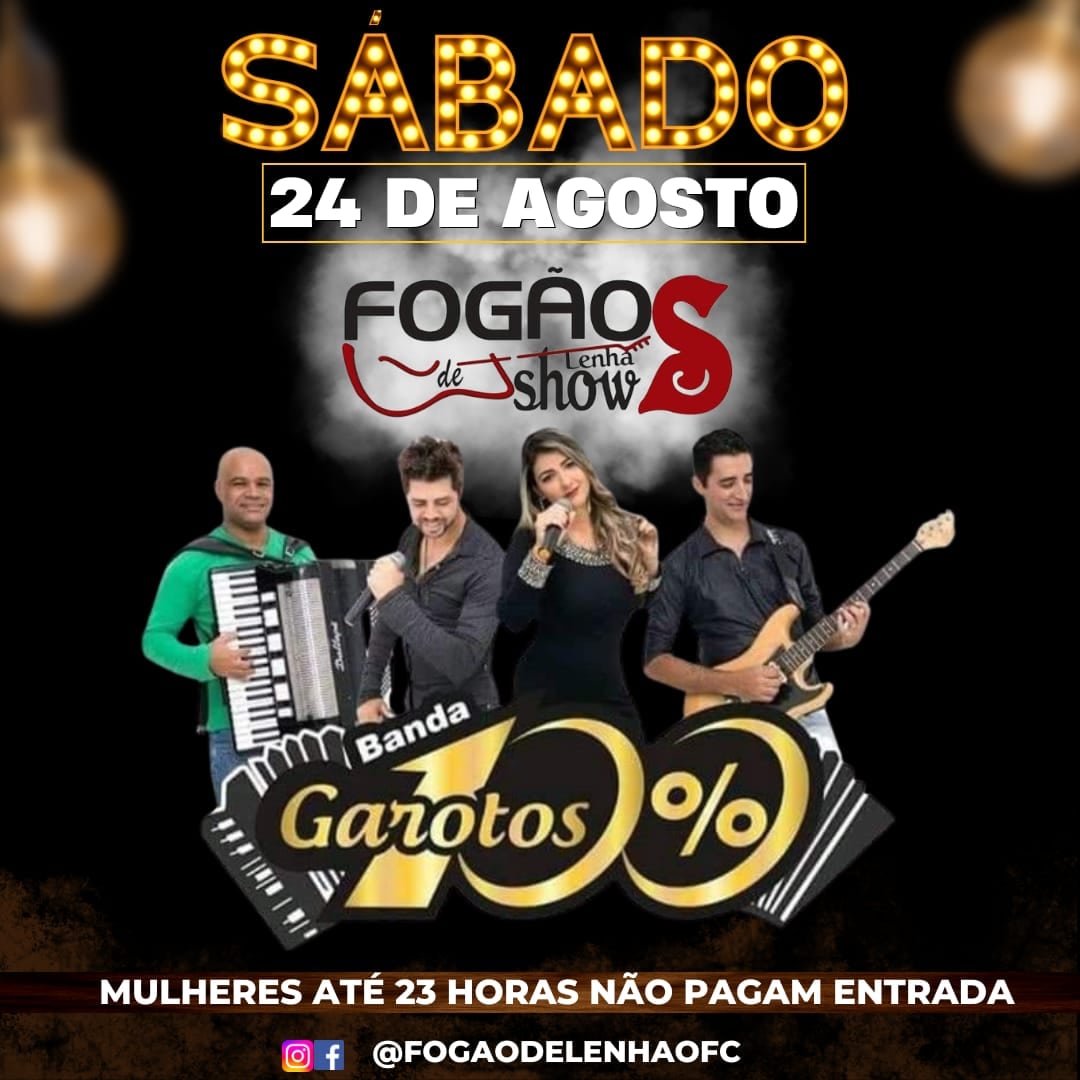 Sábado (24-08) tem a Banda Garotos 100% no Fogão de Lenha Show 🕺🏻💃🏻