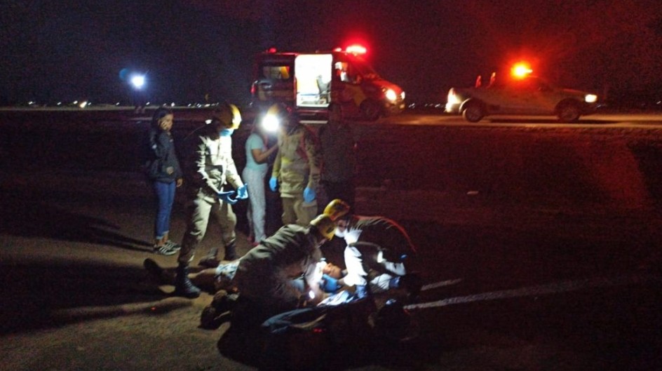Na noite de ontem (16), por volta das 21h16, uma queda de moto na BR-050, no trevo próximo ao Posto JK, mobilizou a equipe de resgate do 10º Batalhão de Bombeiros Militar de Catalão.