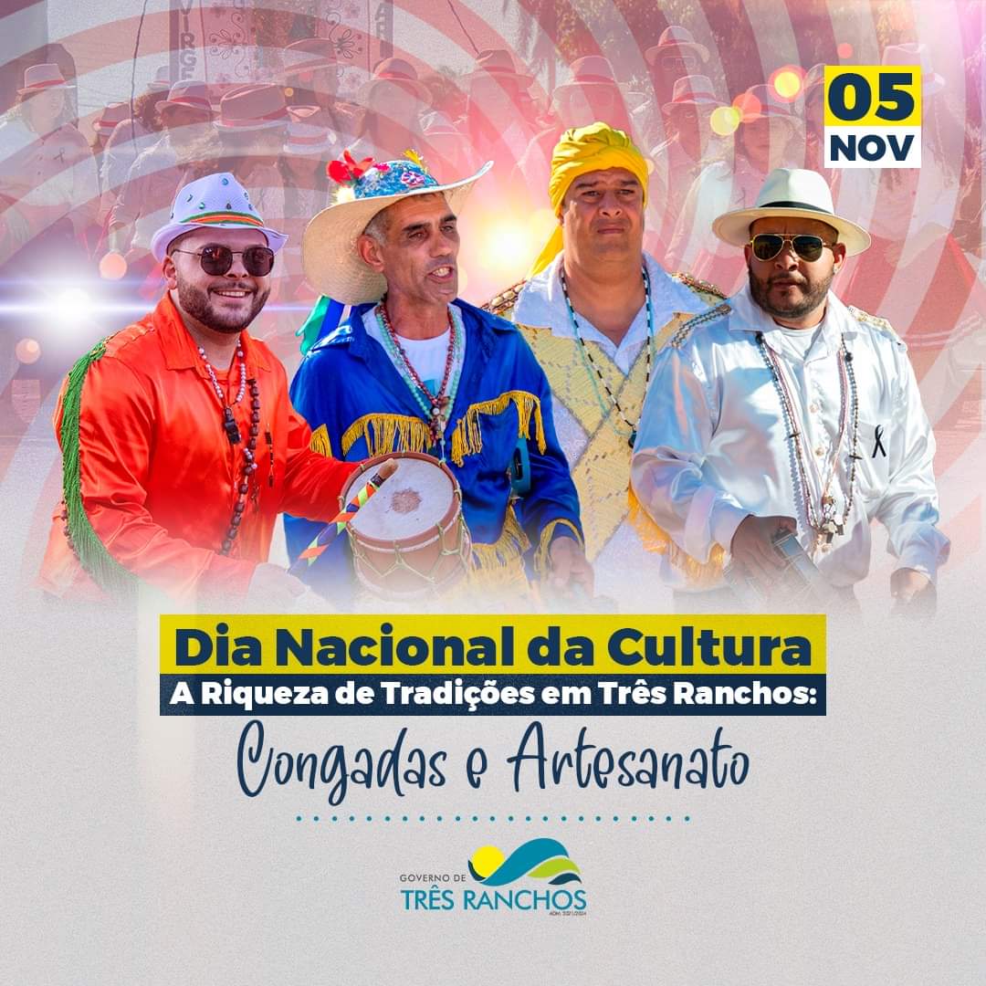 Neste Dia Nacional da Cultura, celebramos a diversidade que faz de Três Ranchos um lugar único. Entre tantas expressões culturais, as Congadas se destacam como um símbolo de nossa história e fé, enquanto o artesanato local reflete a criatividade e a dedicação de nosso povo. Essas tradições, junto com tantas outras, formam o mosaico cultural que nos enche de orgulho. Vamos juntos valorizar e preservar o que nos torna especiais!