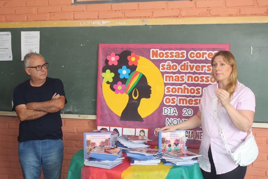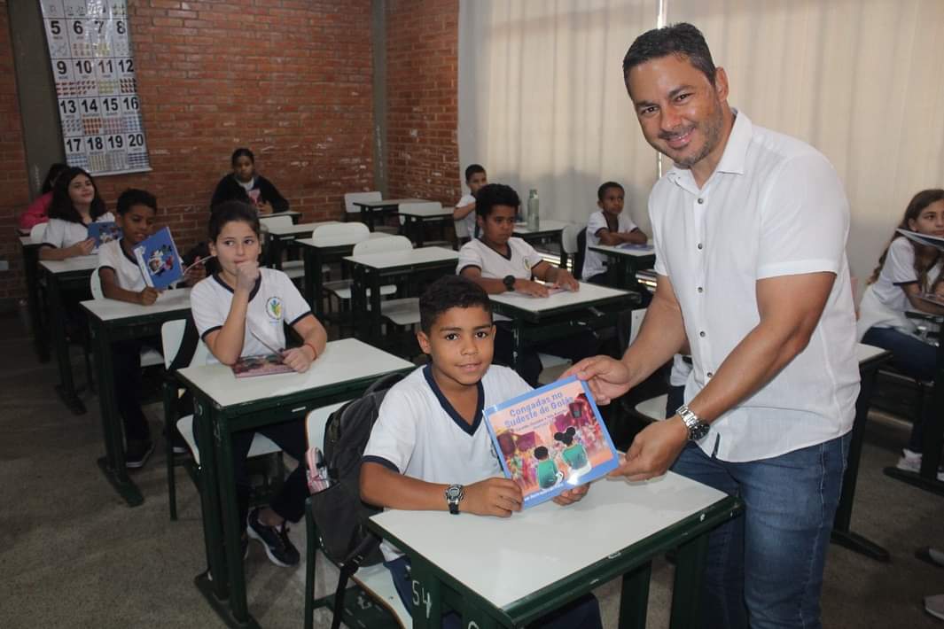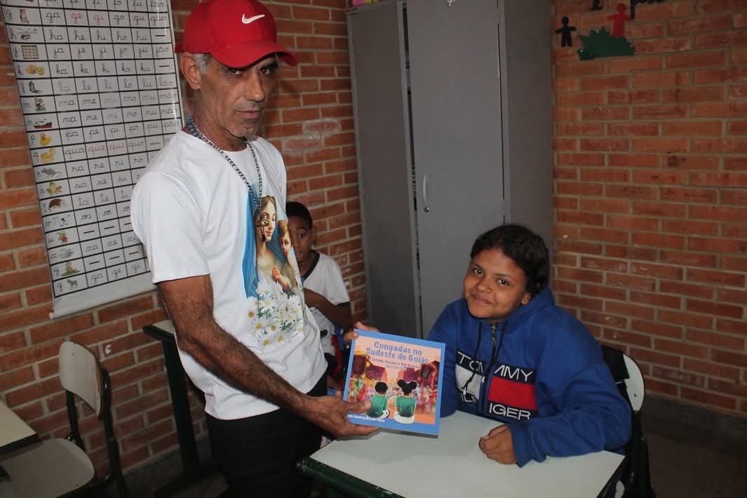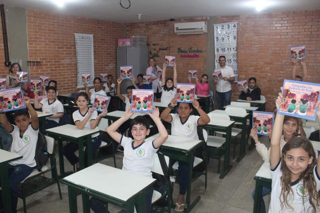 #LiteraturaDaCongada | Um dia de festa para cultura, aconteceu, nesta segunda-feira (18), na “Escola Municipal Santa Rita de Cássia”, com o lançamento do livro “Congadas no Sudeste de Goiás”, que conta a história da Congada de nossa região, escrito pelo geógrafo e historiador, o professor @jose_luizvaz , que teve a oportunidade de falar com os alunos sobre a rica cultura das congadas e seu processo de construção da obra.