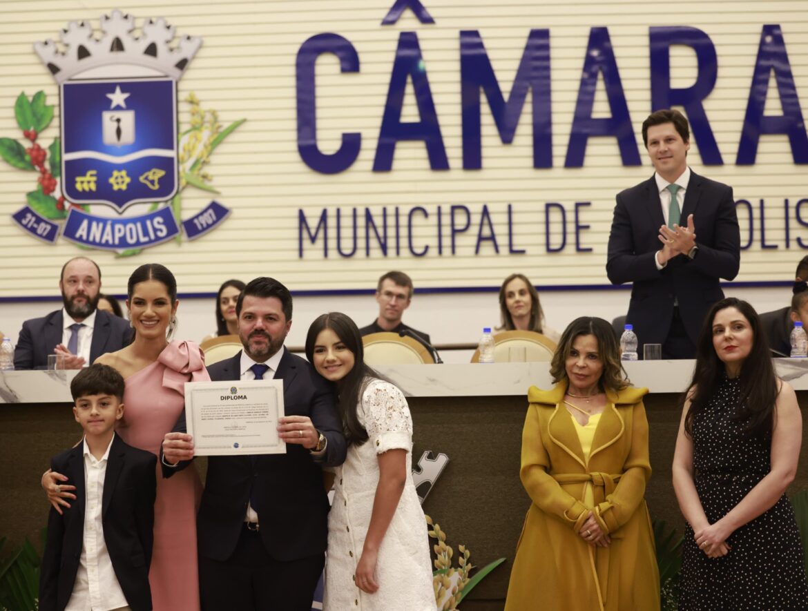 Daniel Vilela esteve ao lado do prefeito eleito Márcio Corrêa, de seu vice Walter Vosgrau e dos 23 vereadores eleitos para a legislatura 2025-2028, durante a cerimônia de diplomação, realizada na noite de quinta-feira (19/12). O vice-governador destacou a relevância estratégica de Anápolis para o desenvolvimento de Goiás e garantiu o apoio do governo estadual à nova gestão municipal.