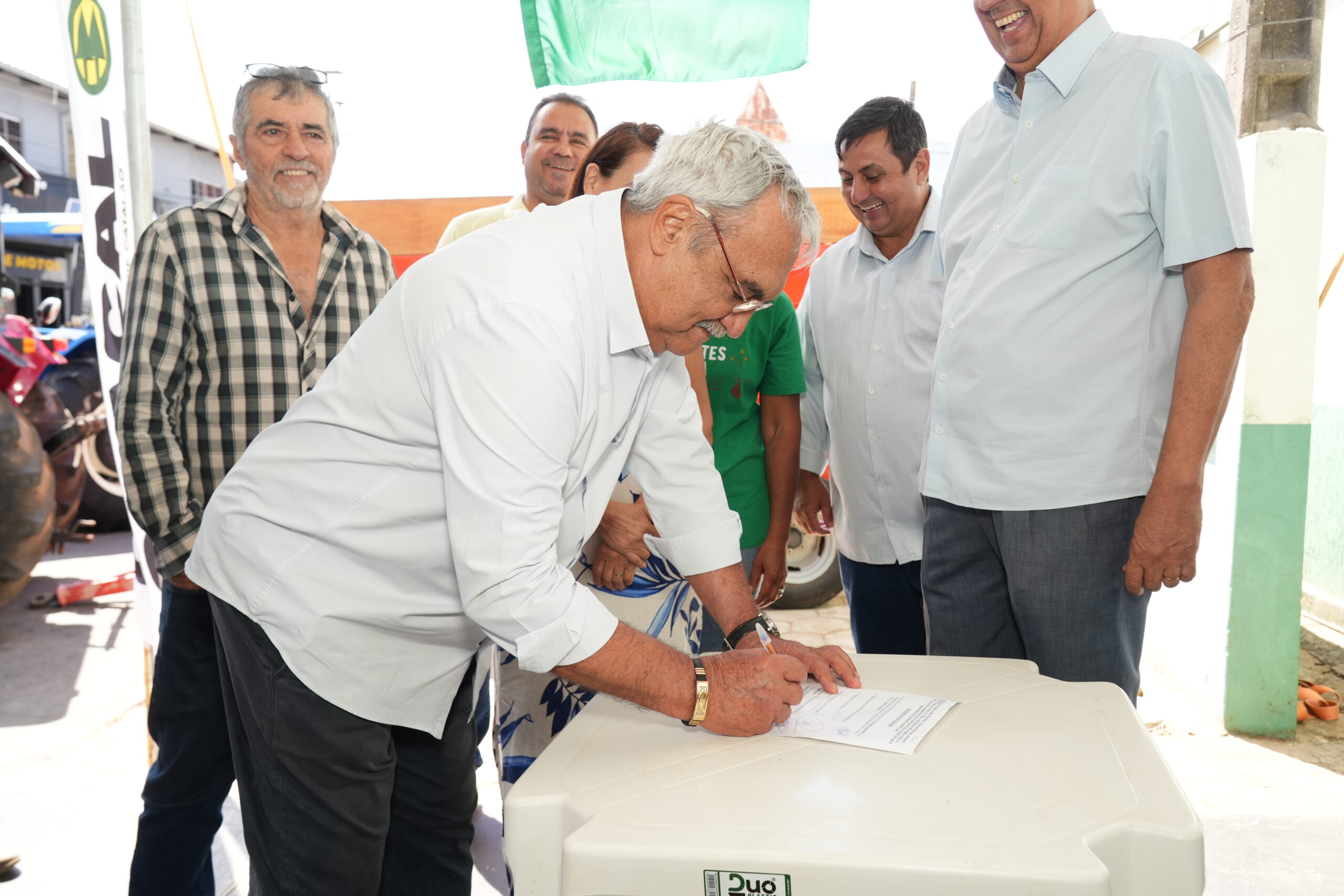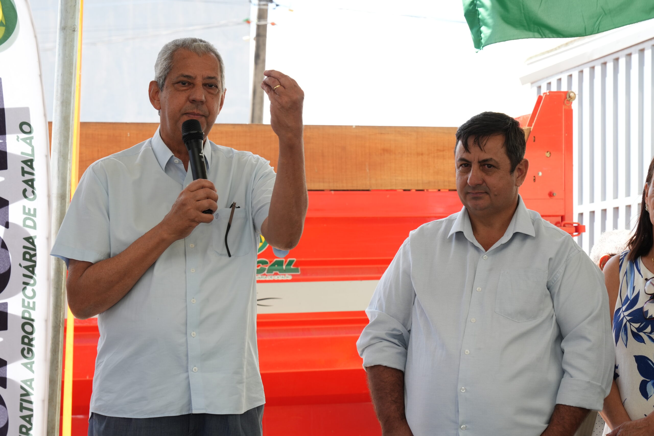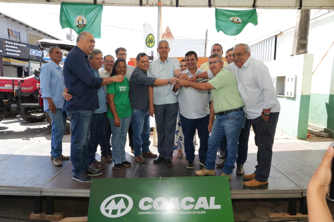 A primeira ação foi a entrega oficial de um trator à COACAL (Cooperativa dos Produtores de Leite de Catalão), acompanhada da assinatura do aporte financeiro para aquisição de uma forrageira, em parceria com a Câmara Municipal. Ambos os equipamentos foram cedidos por meio de concessão da gestão municipal, reforçando o apoio à produção leiteira local.