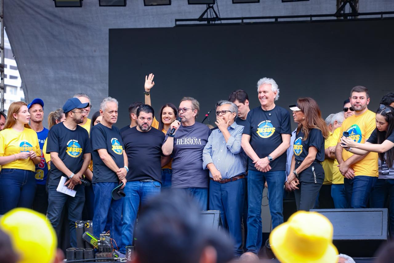 Governador Ronaldo Caiado e autoridades falam aos fiéis na chegada da Marcha para Jesus em Anápolis