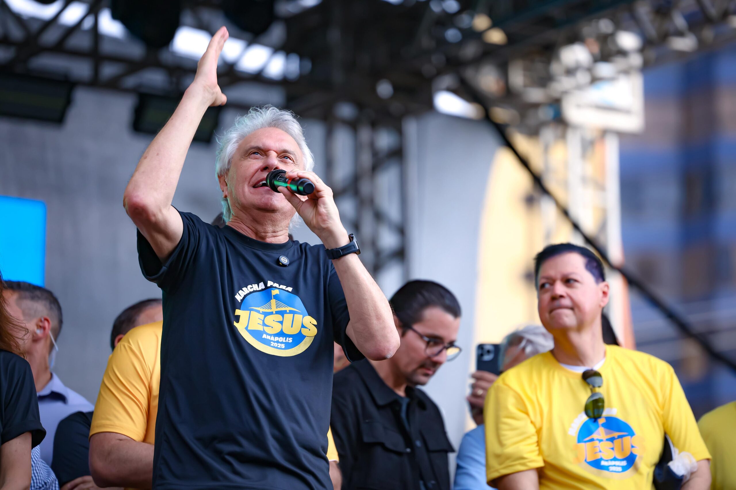 O governador Ronaldo Caiado e a coordenadora do Goiás Social, primeira-dama Gracinha Caiado, participaram, na tarde deste sábado (18/10), da Marcha Para Jesus 2025, em Anápolis. Com apoio logístico e das forças de segurança do Governo de Goiás, o evento volta a ser realizado no município após oito anos. O chefe do Executivo goiano destacou a importância da fé na vida das pessoas e o papel da igreja para o bem-estar da sociedade.