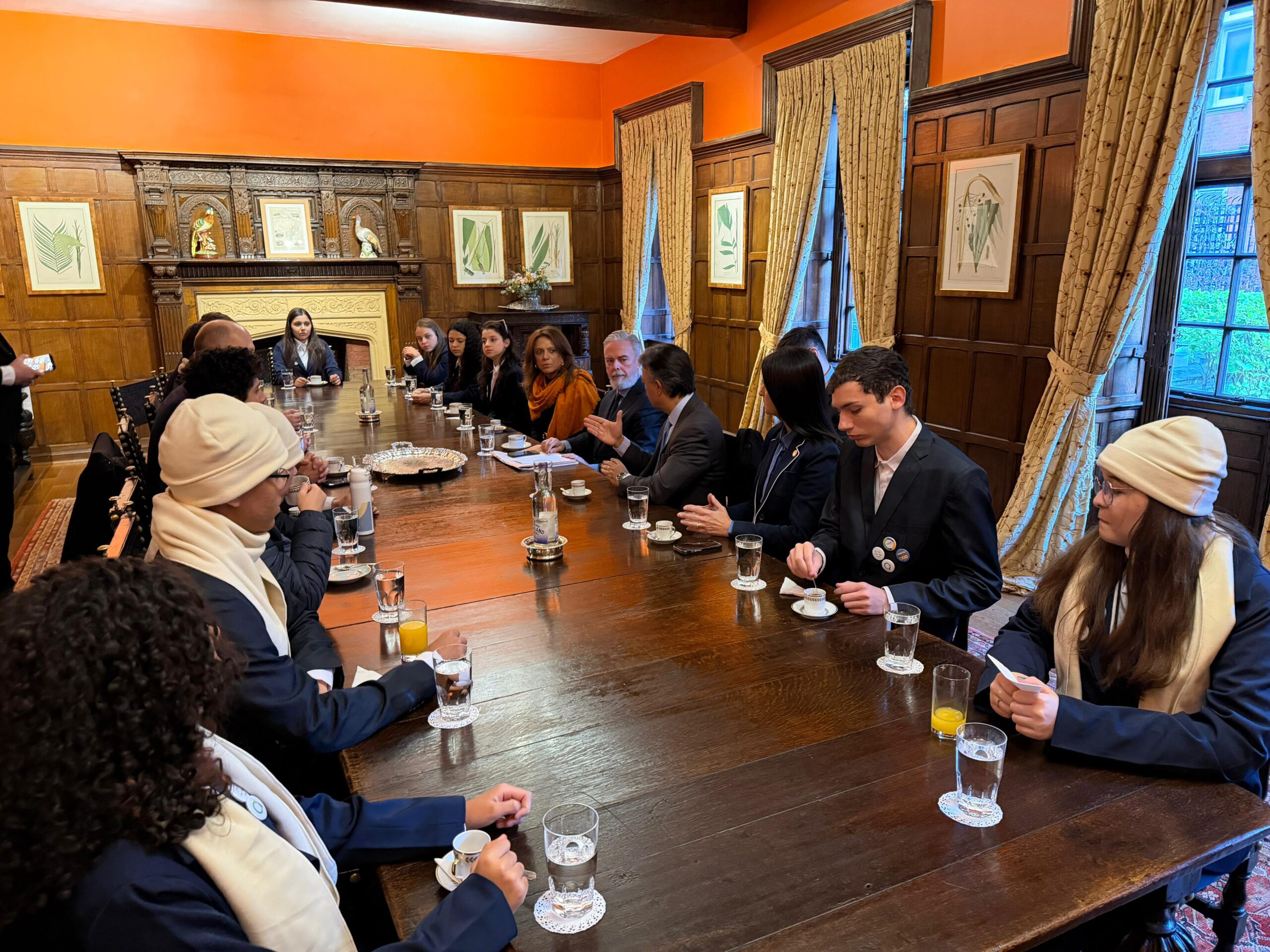Primeira-dama Gracinha Caiado, autoridades e estudantes são recebidos pelo embaixador do Brasil no Reino Unido, Antônio Patriota