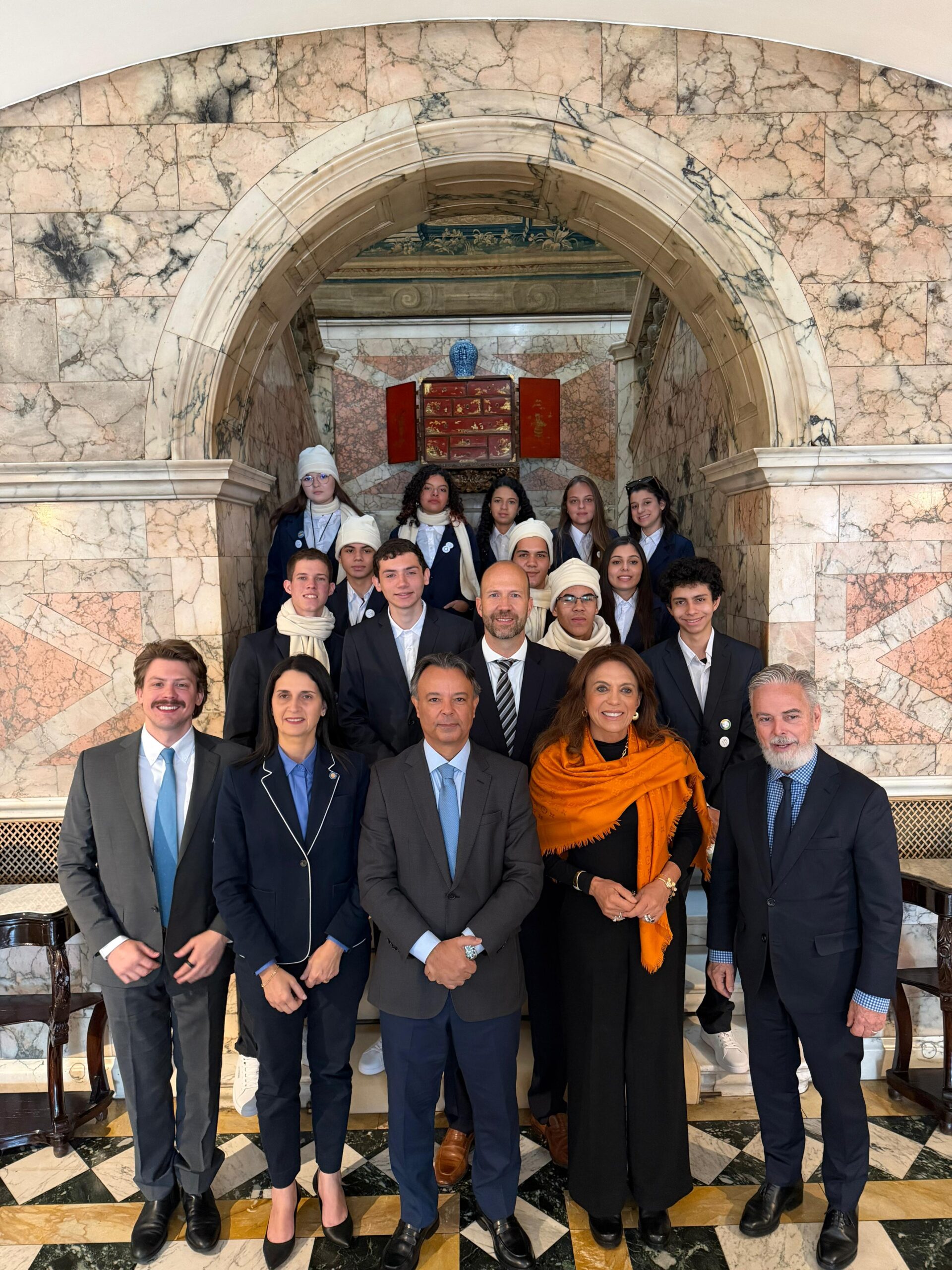 Primeira-dama Gracinha Caiado, autoridades e estudantes são recebidos pelo embaixador do Brasil no Reino Unido, Antônio Patriota