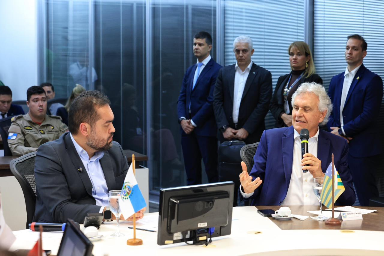 O governador Ronaldo Caiado foi ao Rio de Janeiro, nesta quinta-feira (30/10), para manifestar apoio ao governo local pela megaoperação contra o Comando Vermelho, deflagrada na última terça-feira (28) nos complexos da Penha e do Alemão. “Segurança pública é governabilidade. Ela irradia em todas as outras áreas, é o marco principal”, enfatizou o líder goiano após reunião com o governador fluminense, Cláudio Castro, e de outros estados. No encontro, o grupo anunciou o “Consórcio da Paz”, que vai integrar forças de segurança e serviços de inteligência no combate ao crime organizado.