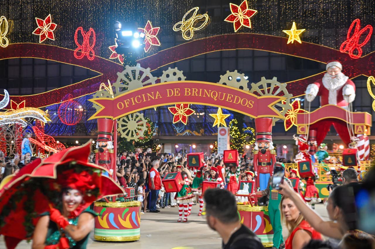 A noite inaugural começou com a cerimônia de acendimento das luzes, às 19h; o desfile natalino, às 19h15; e apresentações artísticas em diferentes palcos do complexo. No Palácio da Música, o espetáculo “Natal de Encantos – O Festival”, em sua 8ª edição, reuniu cerca de 40 profissionais de canto, dança, circo, ginástica artística e artes cênicas, explorando tecnologia de ponta em iluminação, som e painéis de LED para criar uma atmosfera imersiva. No Coreto, o público conferiu apresentação instrumental do Patacan Trio.