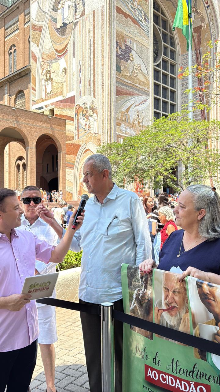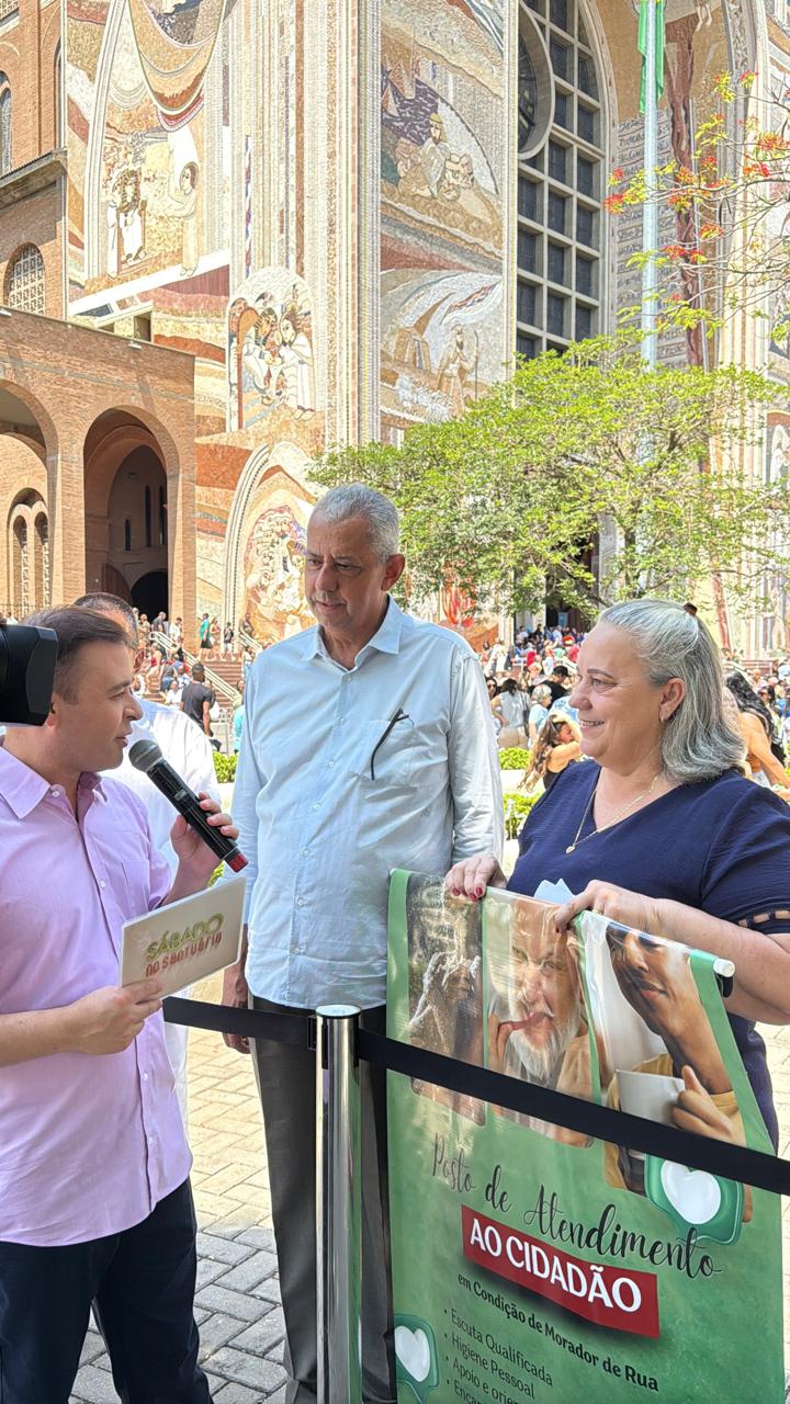 O prefeito de Catalão, Velomar Rios, e a secretária municipal de Promoção e Ação Social, Neusa Rios, concederam entrevista à TV Aparecida, neste sábado (22/11), nos jardins do Santuário Nacional de Aparecida, em Aparecida (SP). Eles falaram sobre a experiência do Posto de Atendimento ao Cidadão na Condição de Morador de Rua, inaugurado em agosto deste ano, em Catalão.