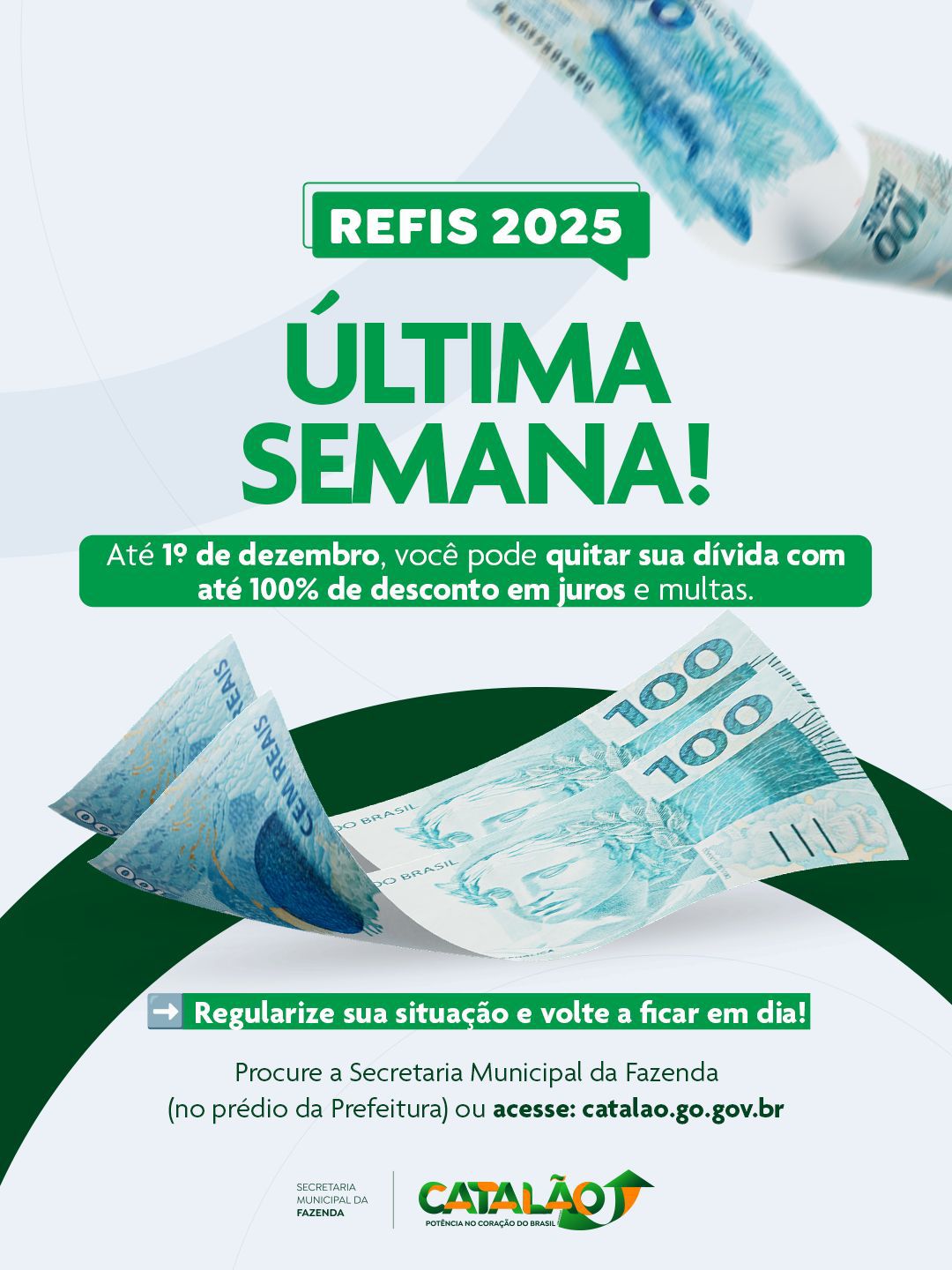 Home Catalão Catalão#Últimos dias para aproveitar o REFIS 2025: prazo vai até 1º de dezembro