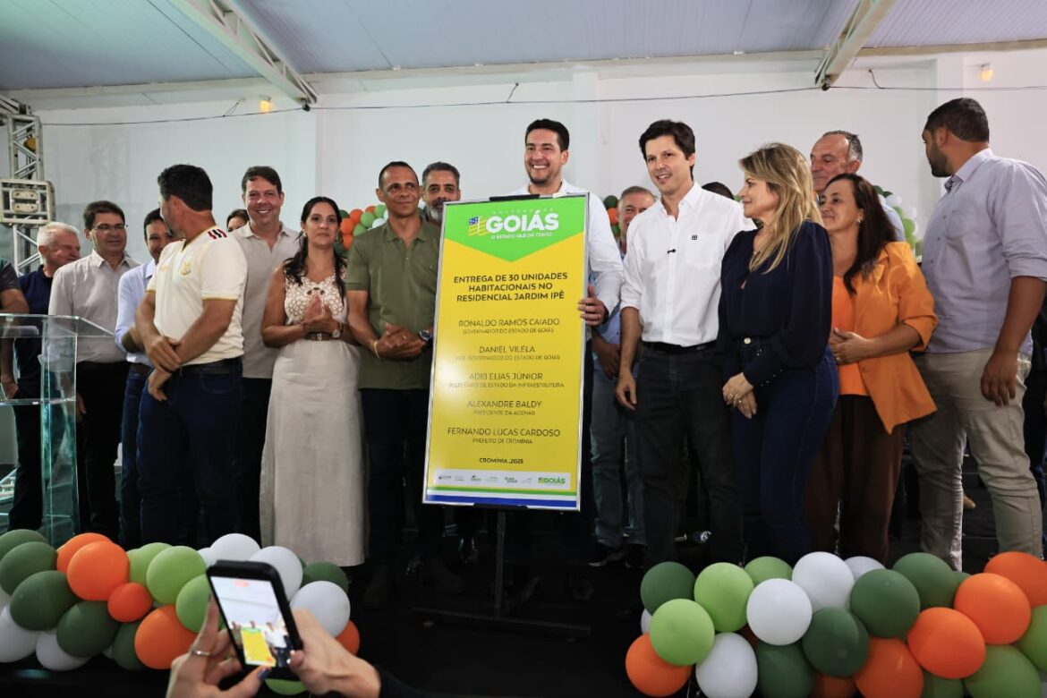 O vice-governador Daniel Vilela entregou, nesta quinta-feira (4/12), 30 unidades habitacionais em Cromínia, pelo programa Pra Ter Onde Morar – Construção/Casas a Custo Zero, por meio do Goiás Social. A iniciativa já contemplou mais de 4,5 mil famílias em todo o estado. No município, o investimento previsto chega a R$ 3,8 milhões, contribuindo para a meta estadual de alcançar 10 mil casas entregues até 2026.
