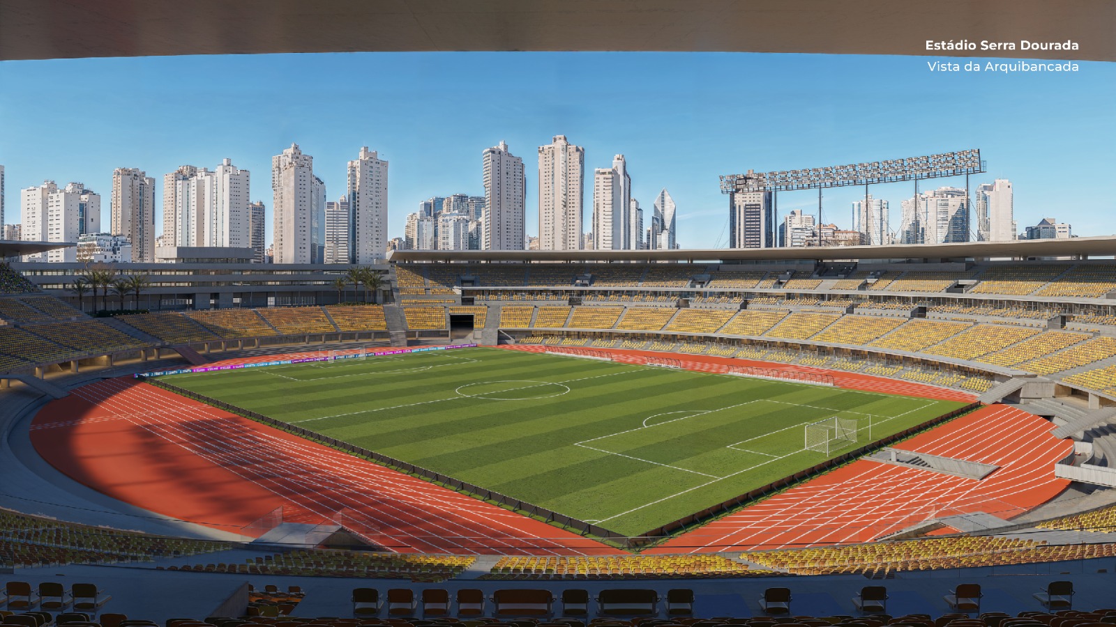Já o Goiânia Arena vai ganhar uma fachada em LED, reestruturação acústica, 29 camarotes e estrutura para grandes espetáculos. Além disso, a área externa do complexo será transformada em um parque urbano poliesportivo aberto ao público, com ciclovia, pista de corrida, quadras poliesportivas e criação de um parque linear com o plantio de cerca de 800 árvores nativas do cerrado. A transformação ainda contempla uma infraestrutura técnica de ponta, incluindo fibra óptica, cobertura 5G e um moderno centro de controle operacional