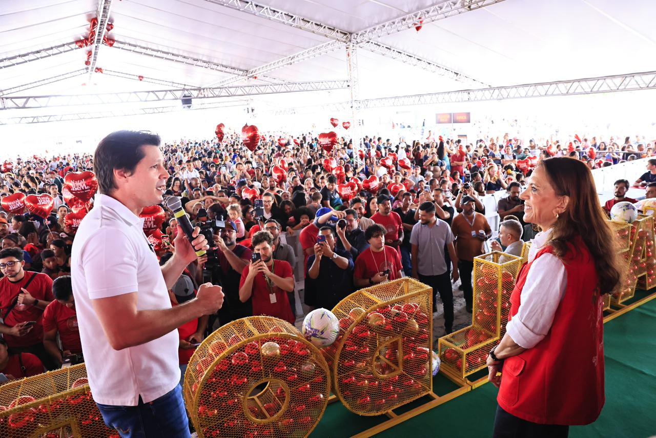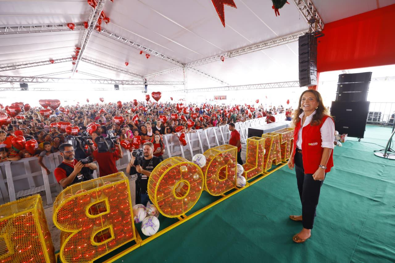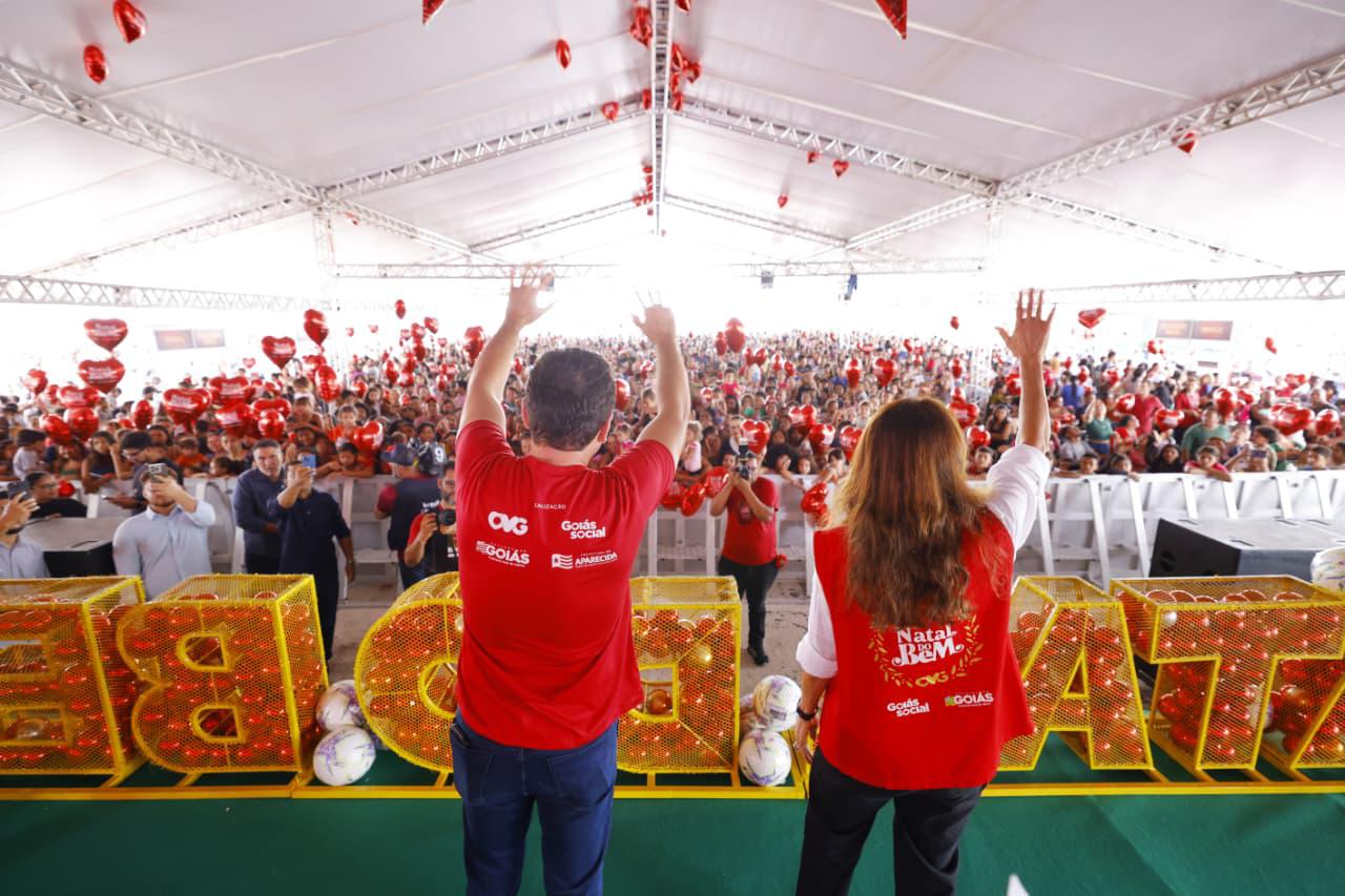 A coordenadora do Goiás Social, primeira-dama Gracinha Caiado, e o vice-governador Daniel Vilela lideraram a entrega de brinquedos em Aparecida de Goiânia, na região Metropolitana da capital. O evento, realizado neste domingo (14/12), destinou 27 mil presentes de Natal a crianças em situação de vulnerabilidade social, proporcionando momentos de alegria com a chegada do Papai Noel e espetáculo musical. Cerca de 10 mil pessoas participaram do evento.