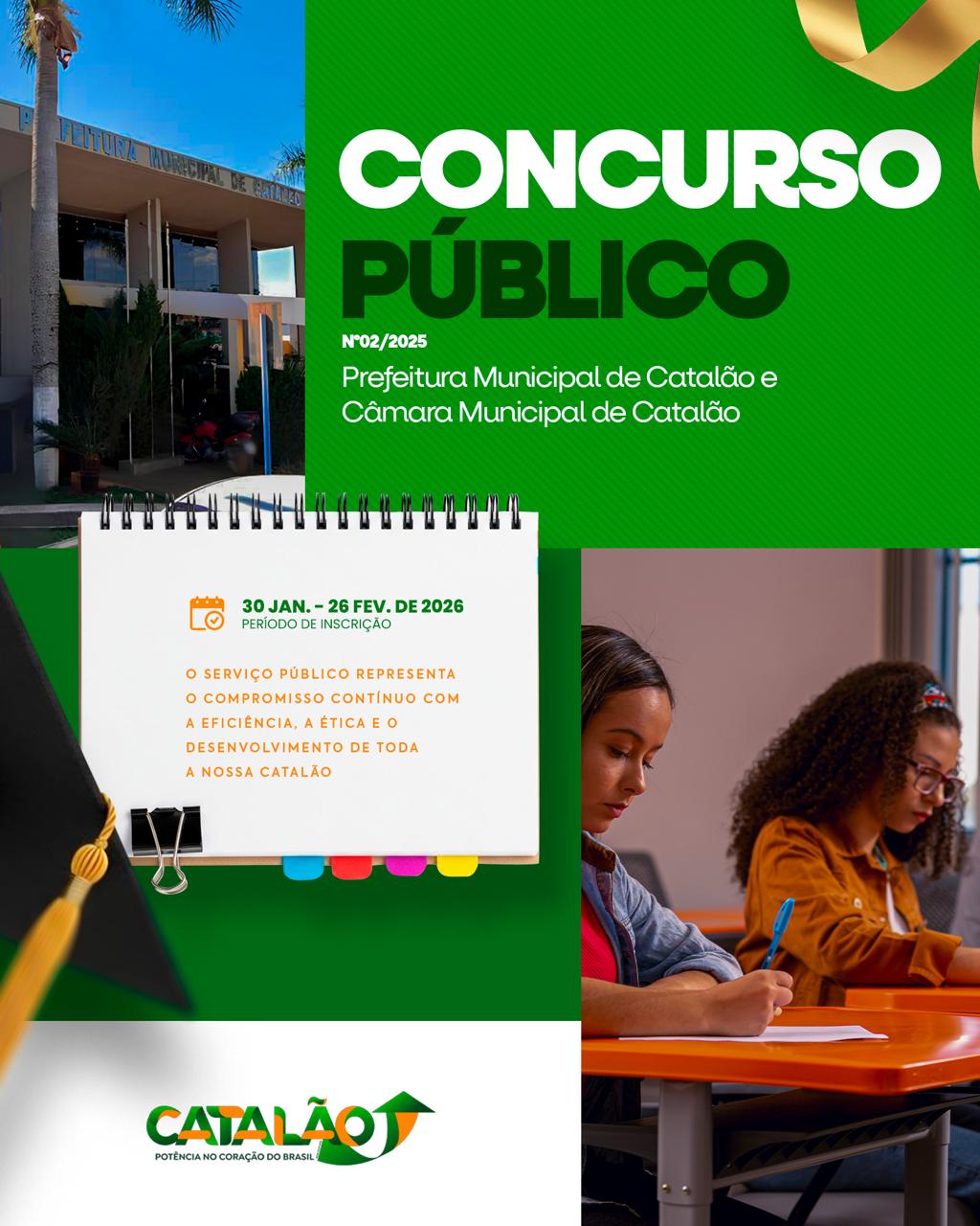 Em uma iniciativa conjunta para o fortalecimento do quadro de servidores municipais, a Prefeitura Municipal de Catalão e a Câmara Municipal tornaram pública a abertura do Concurso Público nº 02/2025. O edital prevê o preenchimento de 40 vagas para contratação imediata, além da formação de cadastro de reserva com 143 vagas de reserva técnica para cargos efetivos nos quadros de ambos os poderes.