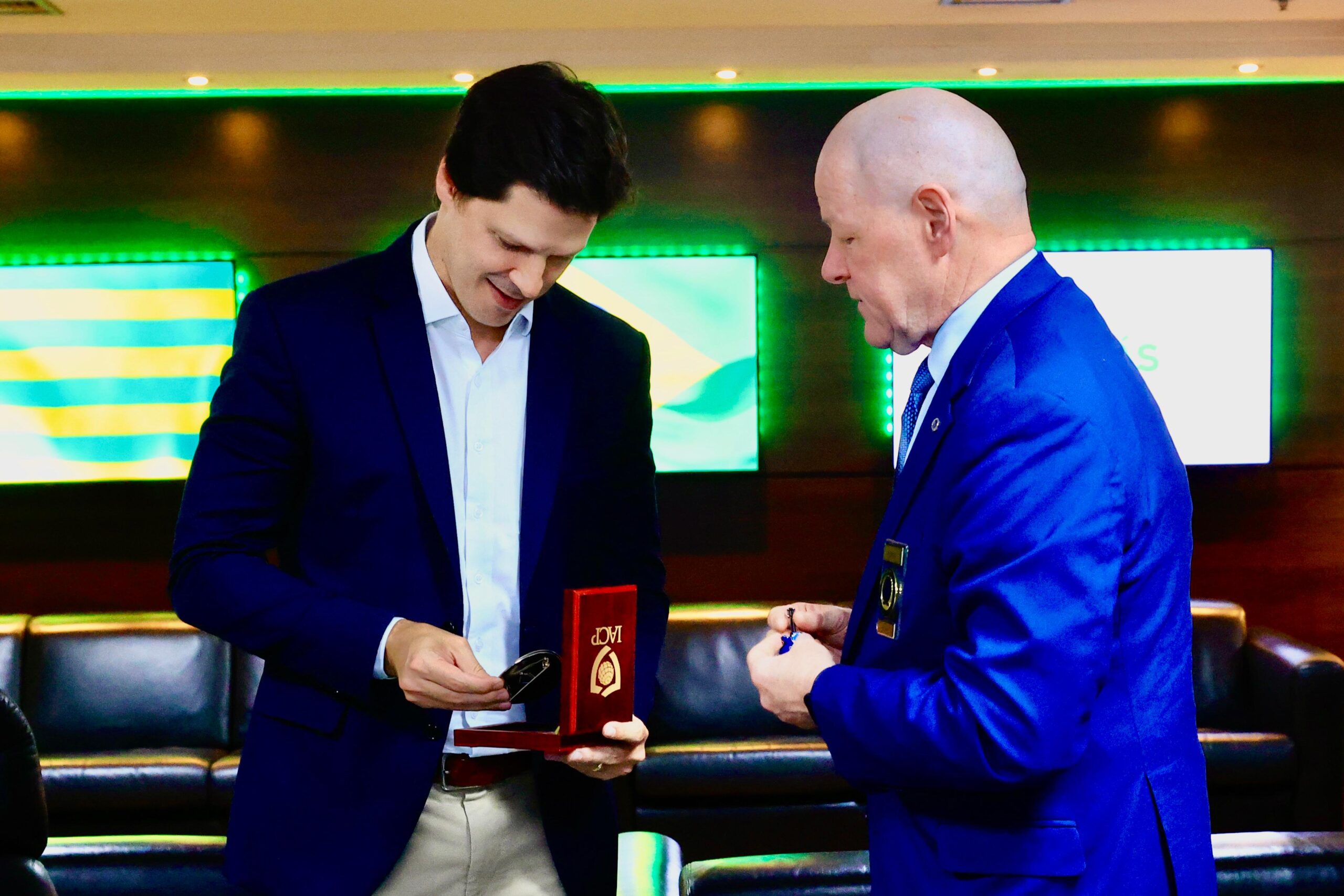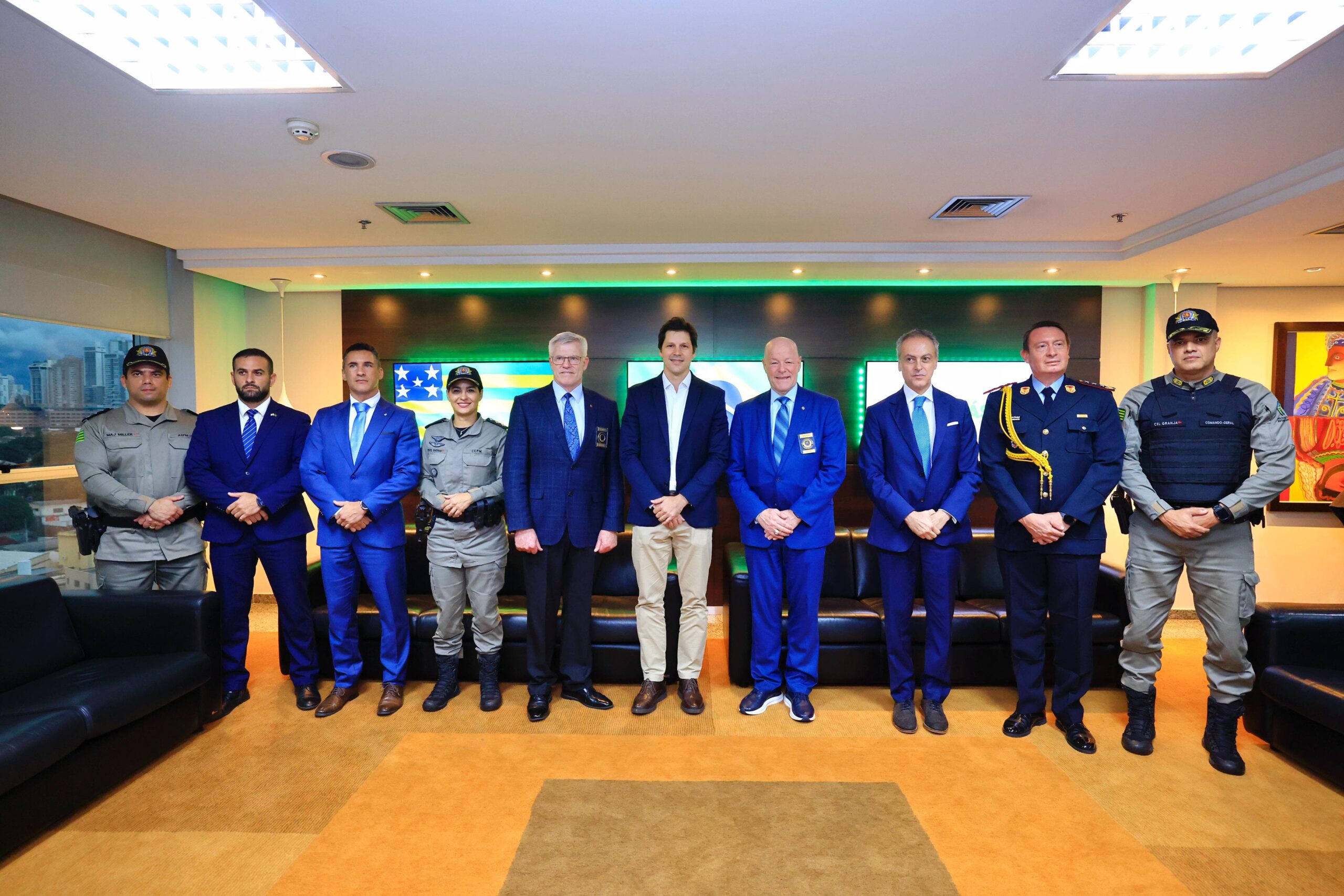 Vice-govenador Daniel Vilela recebe comitiva e homenagens de organização internacional que reconhece atuação do Governo de Goiás na área de segurança pública