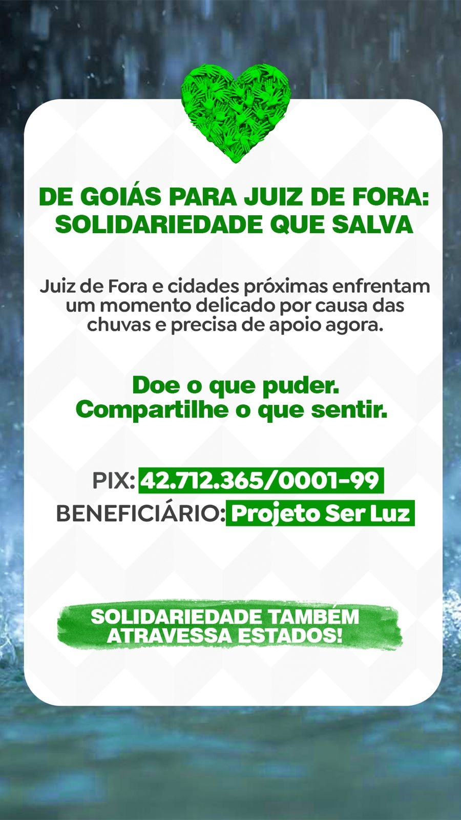 Finalidade: apoio às famílias atingidas pelas chuvas em Juiz de Fora