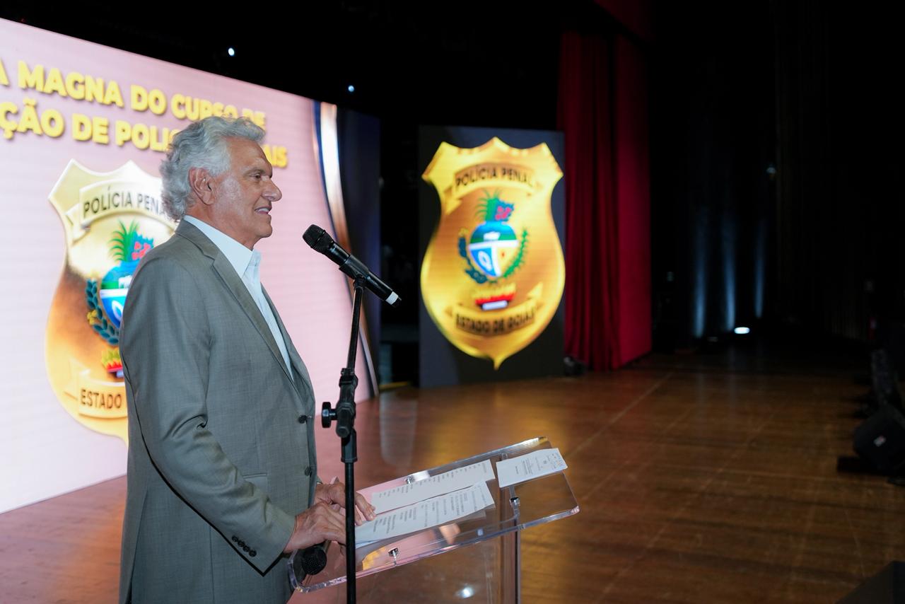 Durante a solenidade, Caiado destacou que “quando um cidadão é condenado, deve existir uma polícia penal que faça com que ele cumpra a sua pena dentro das regras de reinserção e, para aqueles que são reincidentes, vão exatamente para as penitenciárias de segurança máxima, onde não comandam mais o crime”. O governador ressaltou ainda a eficiência da polícia penal de Goiás: “Vocês devem ter orgulho desta farda, porque estão ingressando na melhor polícia penal do Brasil. Vocês estão numa escola de formação que vai além daquilo que é a função da segurança, mas alcança o caráter, a qualificação, o estudo, a ciência e o desenvolvimento de propostas”, afirmou.