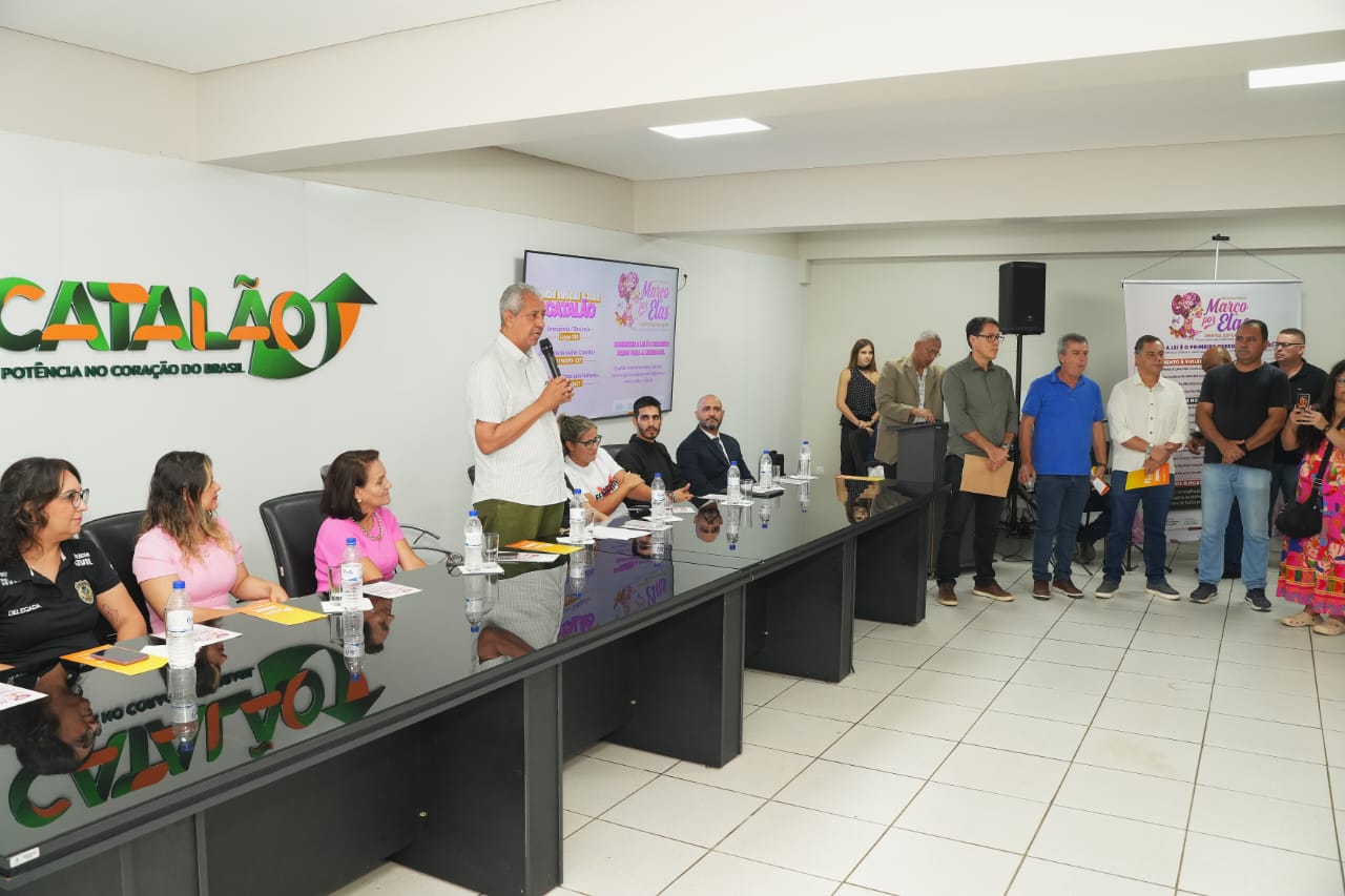 Em um movimento estratégico para consolidar as políticas públicas de proteção e empoderamento feminino, a Prefeitura de Catalão deu início oficial, nesta sexta-feira (6), à campanha “Março por Elas – Direito, Justiça e Ação para todas as Mulheres e Meninas”. O evento, realizado no Auditório da Prefeitura de Catalão, foi marcado pela assinatura de uma Carta de Compromisso Municipal pela Igualdade, documento que estabelece metas para a integração de forças entre o poder público e a sociedade civil e foi assinado por mulheres que compõem o tecido social de Catalão, representantes de diversos segmentos da comunidade e da sociedade civil. O gesto simboliza que a responsabilidade pela garantia de direitos é um acordo coletivo entre o poder público e as cidadãs.
