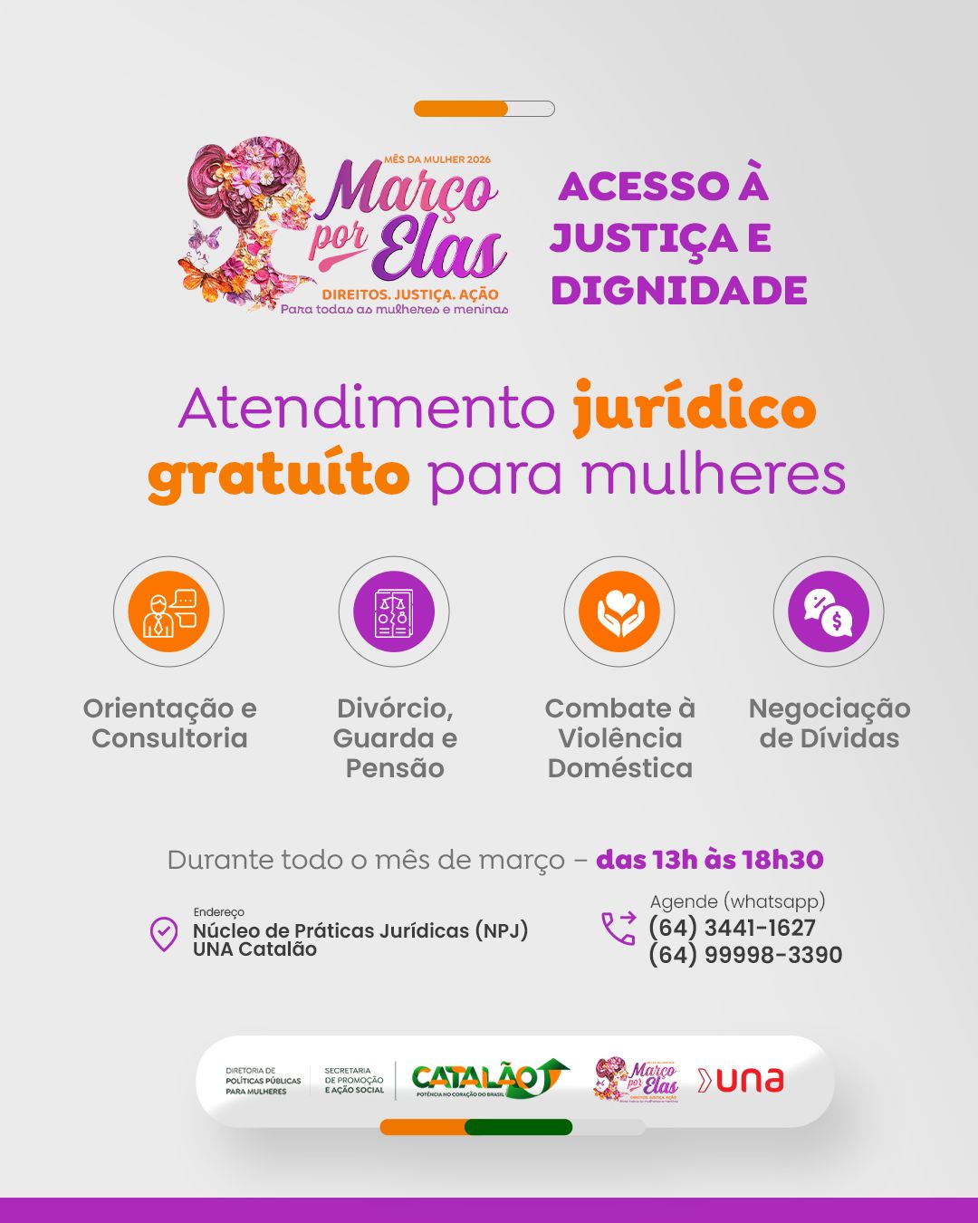 A Prefeitura de Catalão, por meio da Secretaria de Promoção e Ação Social e sua Diretoria da Mulher, oficializou uma parceria estratégica com o Núcleo de Práticas Jurídicas (NPJ) do Centro Universitário UNA. A iniciativa visa ampliar o acesso gratuito à justiça para as mulheres do município, oferecendo suporte especializado durante o Mês da Mulher e em ações contínuas ao longo do ano.