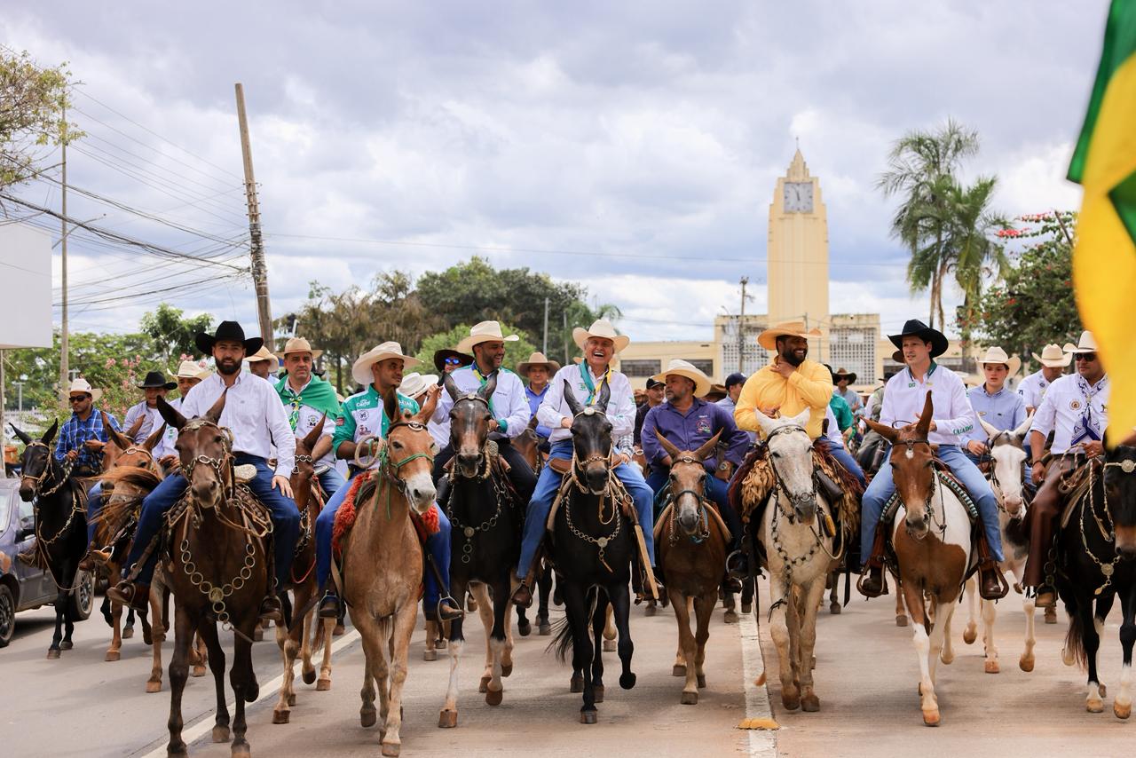 A cavalgada teve início no Parque de Exposições Agropecuárias e seguiu pelas avenidas Goiás e Araguaia, passando pela Praça Cívica. Organizado pela Associação Brasileira dos Criadores de Muares (ABCMuares), o evento conta com cerca de 100 comitivas, com animais em exposições e competições.